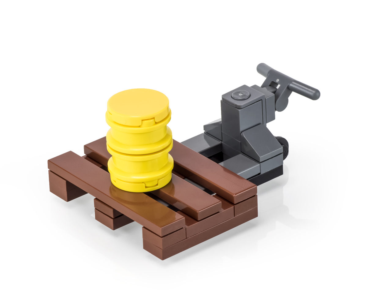 Pallet Jack with Pallet & Oil Drum
