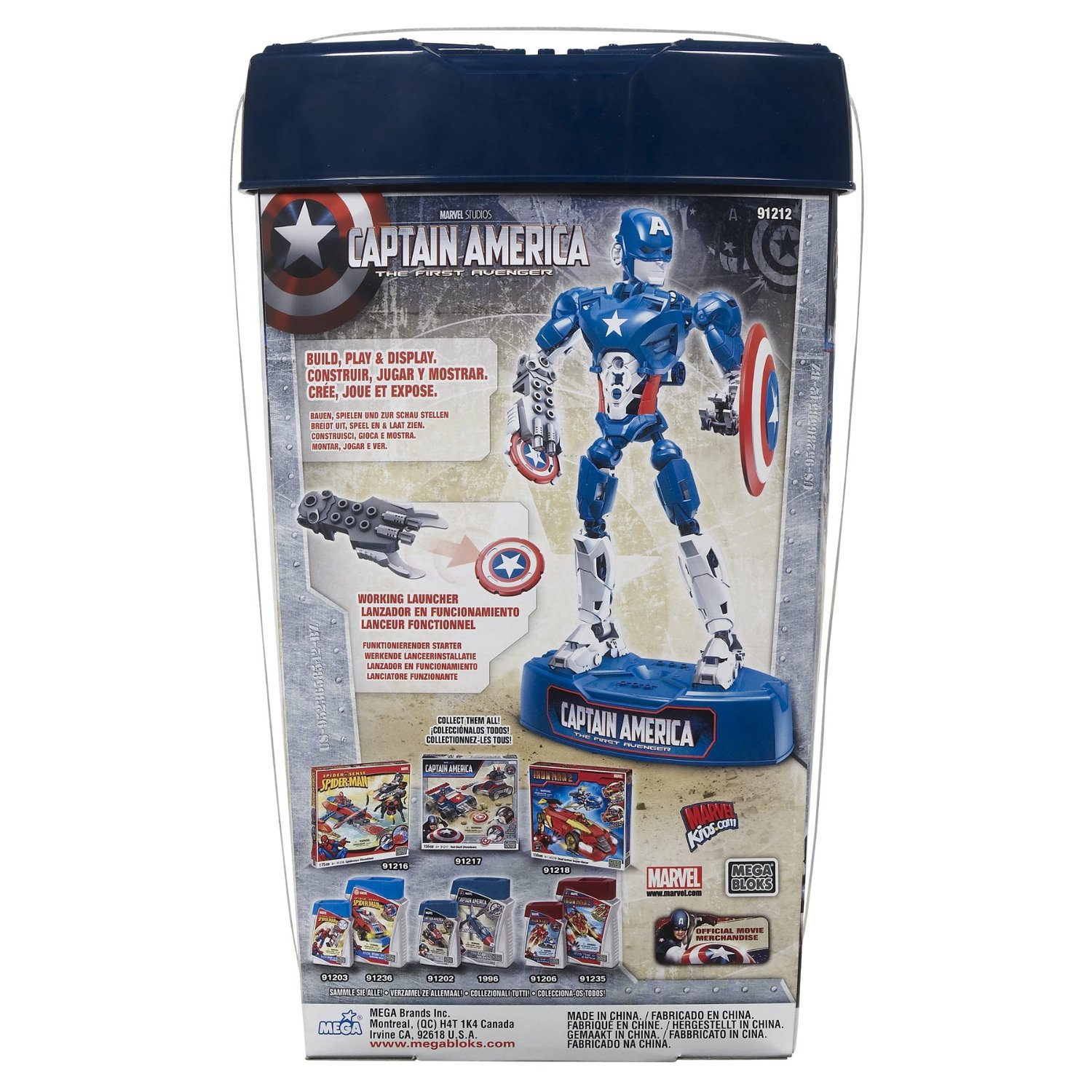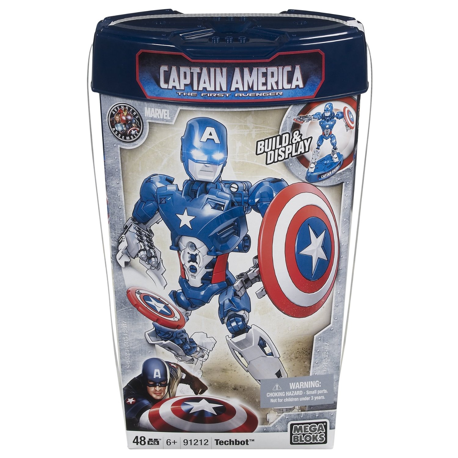 Join the fight against evil with Captain America in his new Techbot armor with the Mega Bloks Captain America Techbot (91212). The fully actionable 10'' buildable armor includes 50 buildable pieces and a wrist-mounted missile launcher that really fires! Place the Techbot on its stand to make it perform all kinds of actions - standing tall to secure the perimeter, crouching low to dodge enemy fire, hover straight up in the air to get a height advantage or angle Captain America to send his shield flying! Each Techbot is completely interchangeable with other Techbots; build your own custom armors for any situation! The Mega Bloks Captain America Techbot (91212) features: