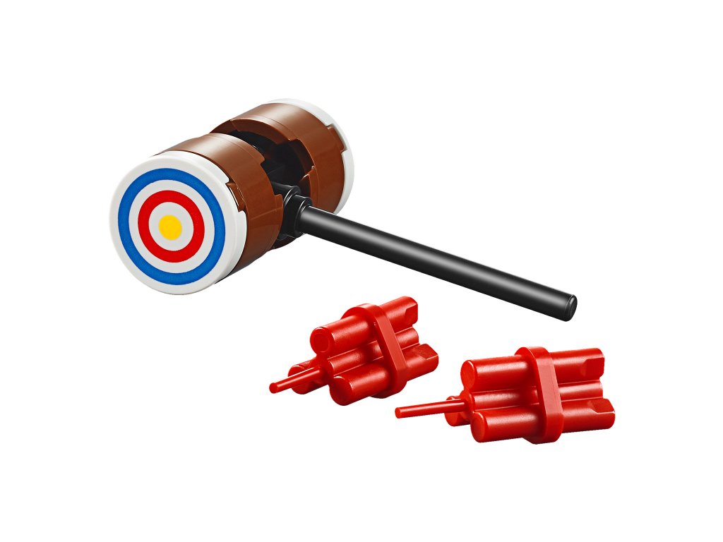 | 2 X Tile, Round 2 x 2 with Bottom Stud Holder with Blue and Red Circles and Yellow Dot Archery Target Pattern | White |   |  |