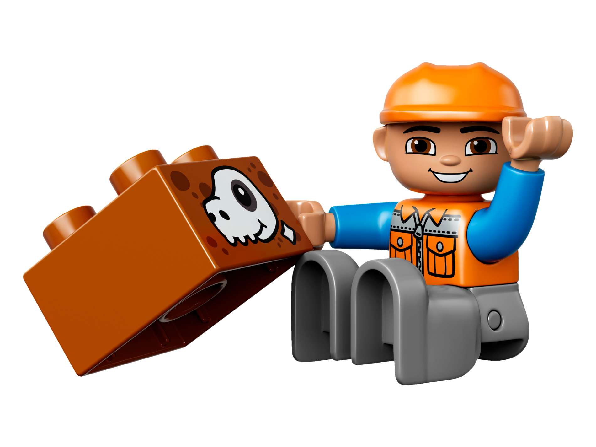 Duplo Figure Lego Ville, Male, Dark Bluish Gray Legs, Orange Vest with Zipper and Pockets, Orange Construction Helmet