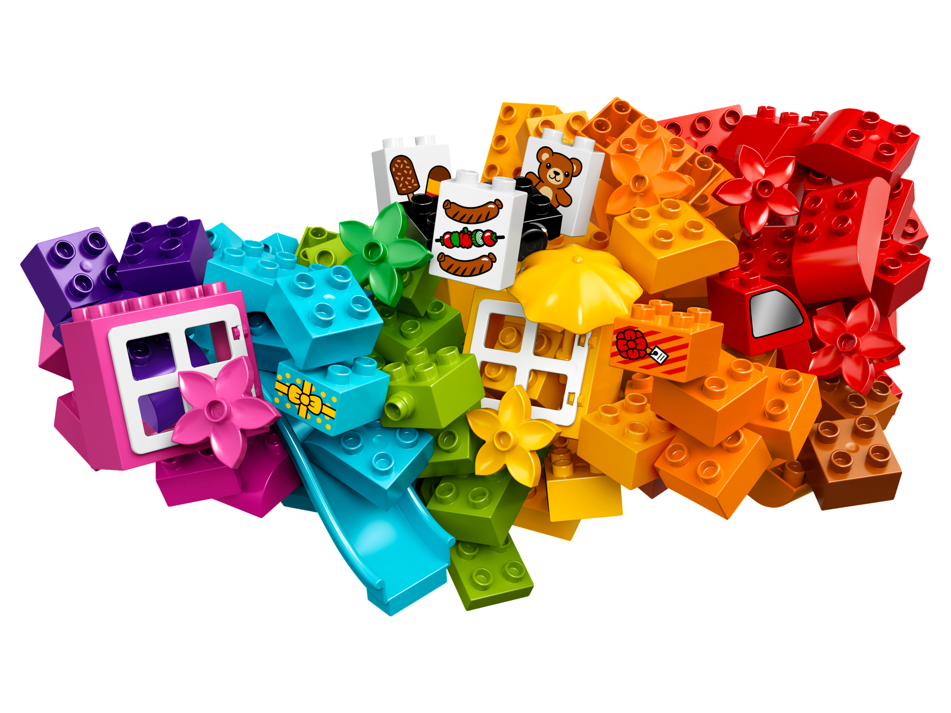 | 1 X Duplo, Brick 1 x 2 x 2 with Bottom Tube with 2 Sausages and Kebab Pattern | White |   |  |