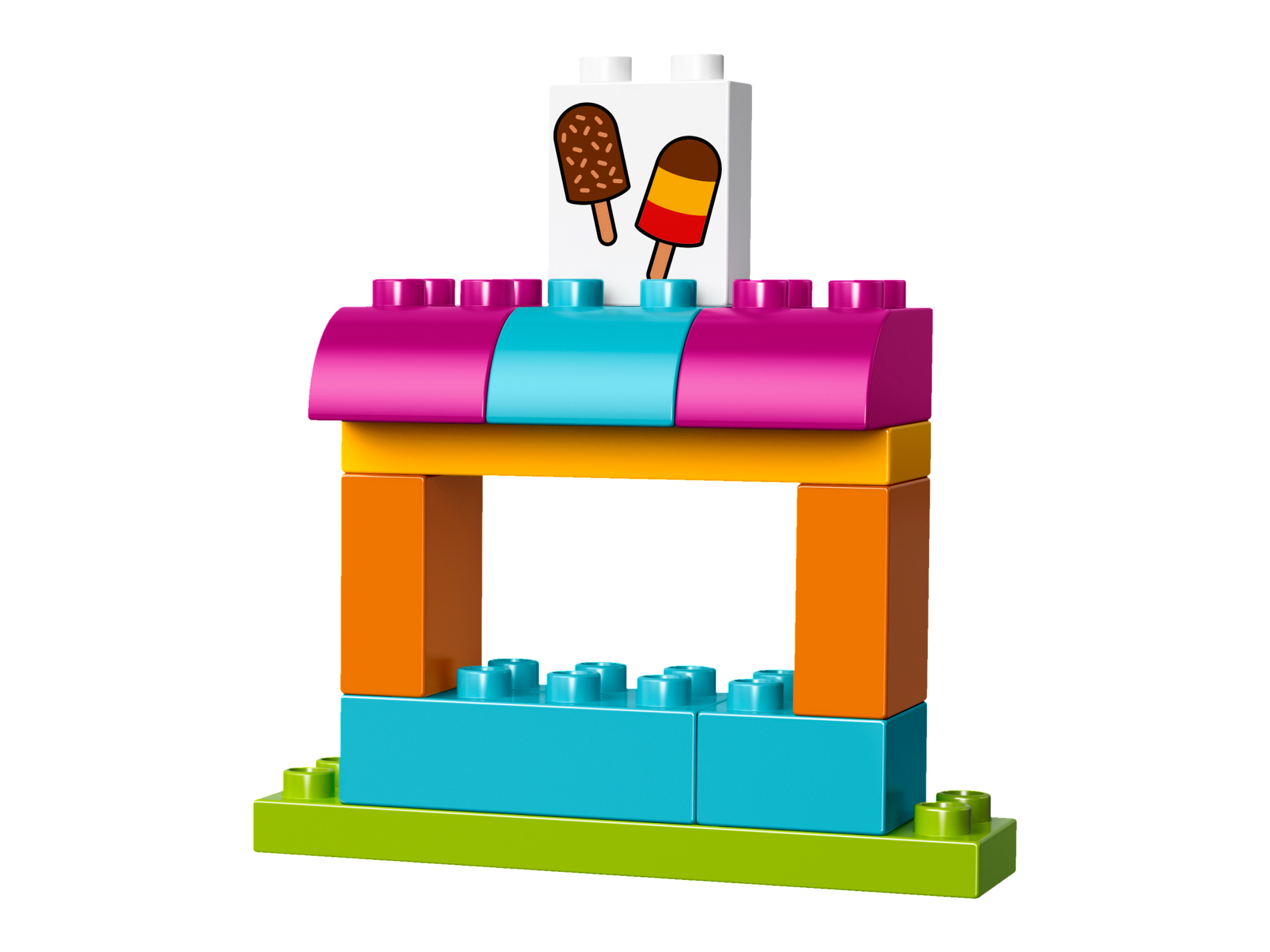 | 1 X Duplo, Brick 1 x 2 x 2 with Bottom Tube with 2 Ice Cream Pops Pattern | White |   |  |