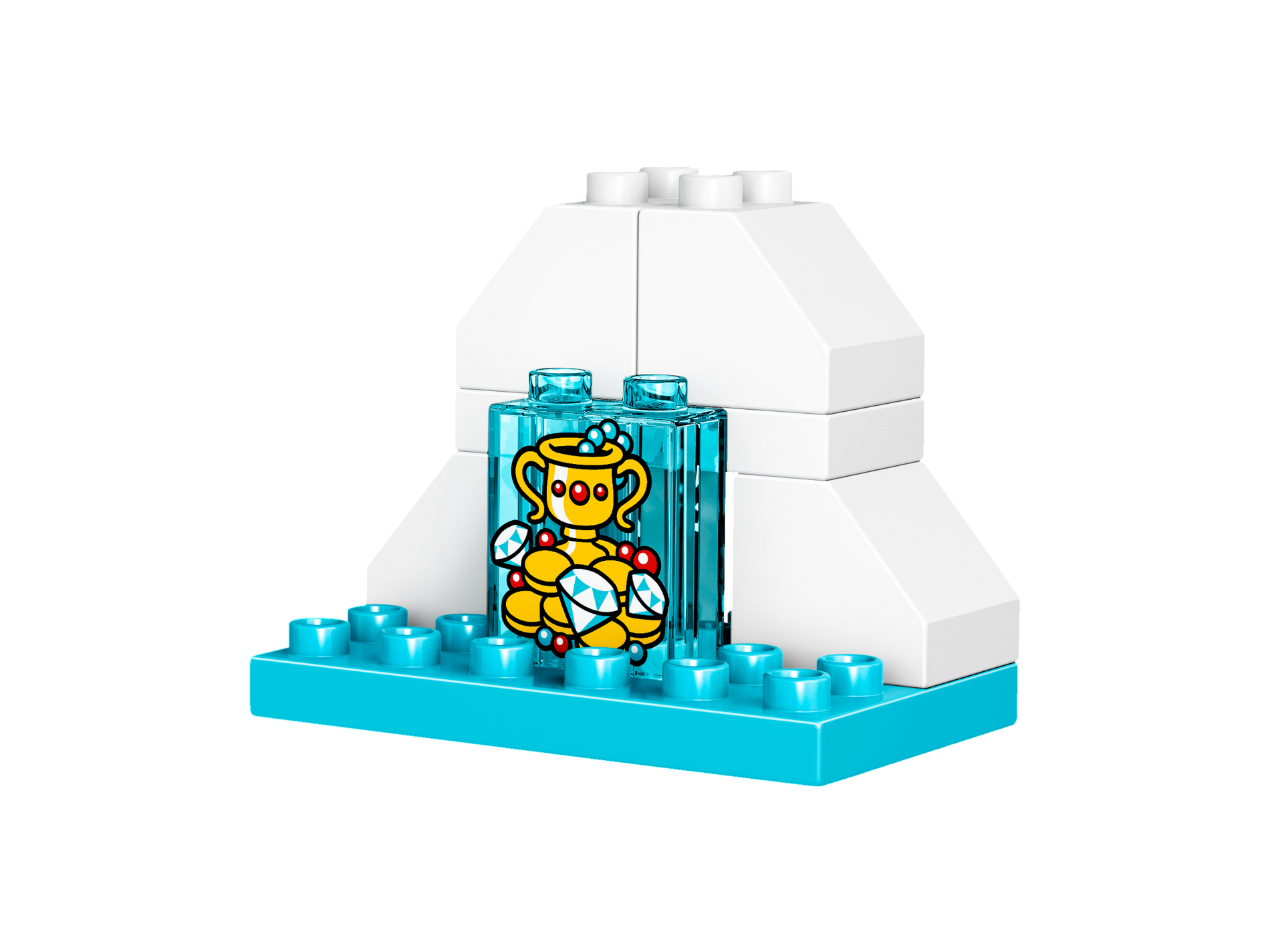 | 1 X Duplo, Brick 1 x 2 x 2 with Bottom Tube with Goblet, Jewelry and Gold Coins Pattern | Trans-Light Blue |   |  |