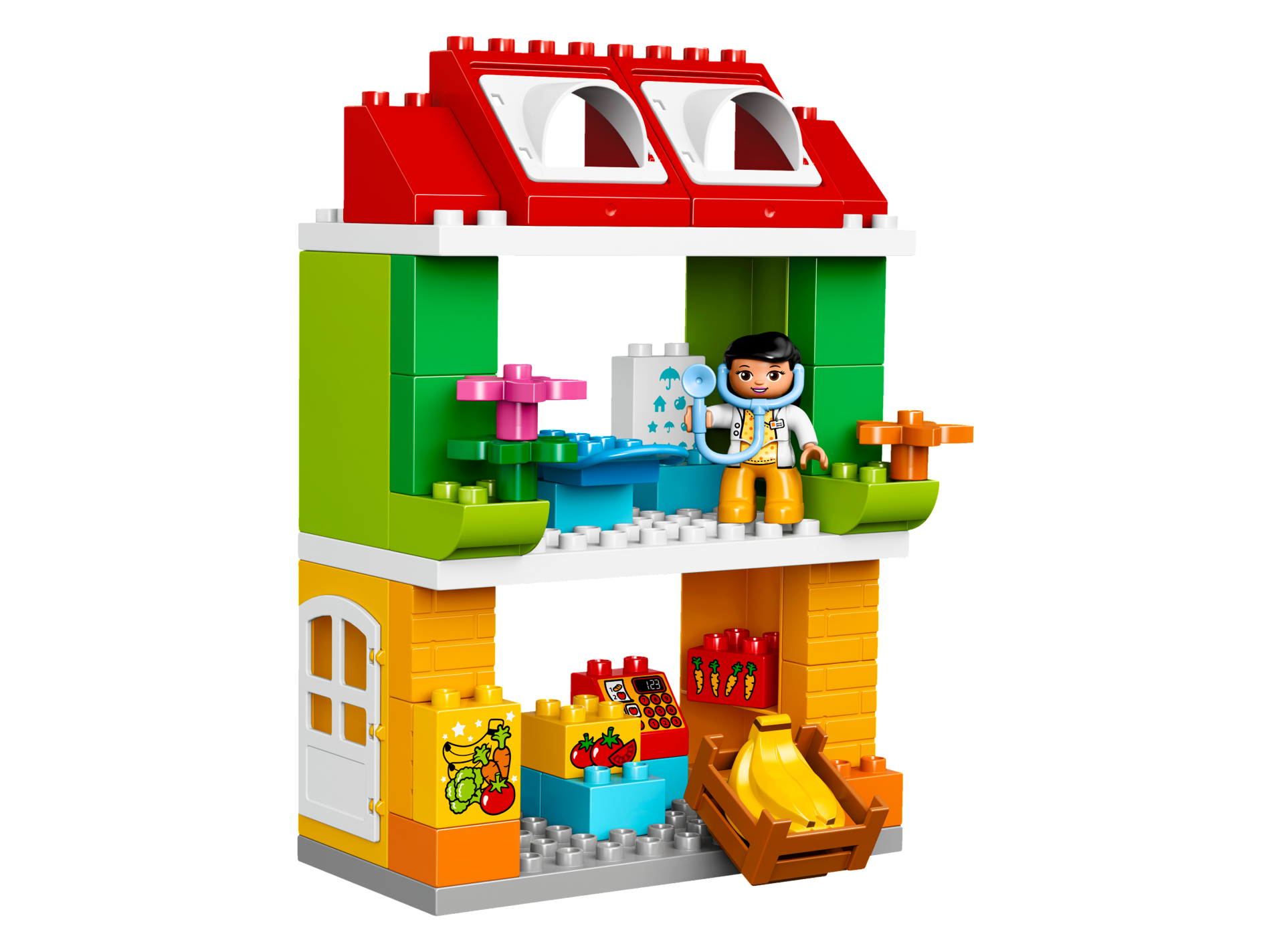 | 1 X Duplo, Brick 1 x 2 x 2 with Bottom Tube with Fruits and Vegetables (Bananas, Carrots, Tomato and Broccoli) Pattern | Yellow |   |  |