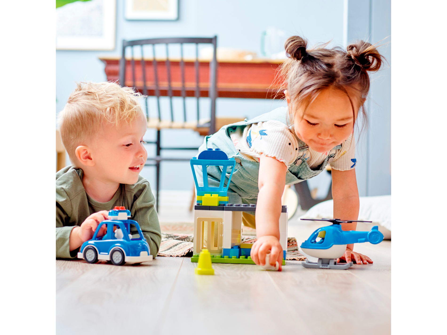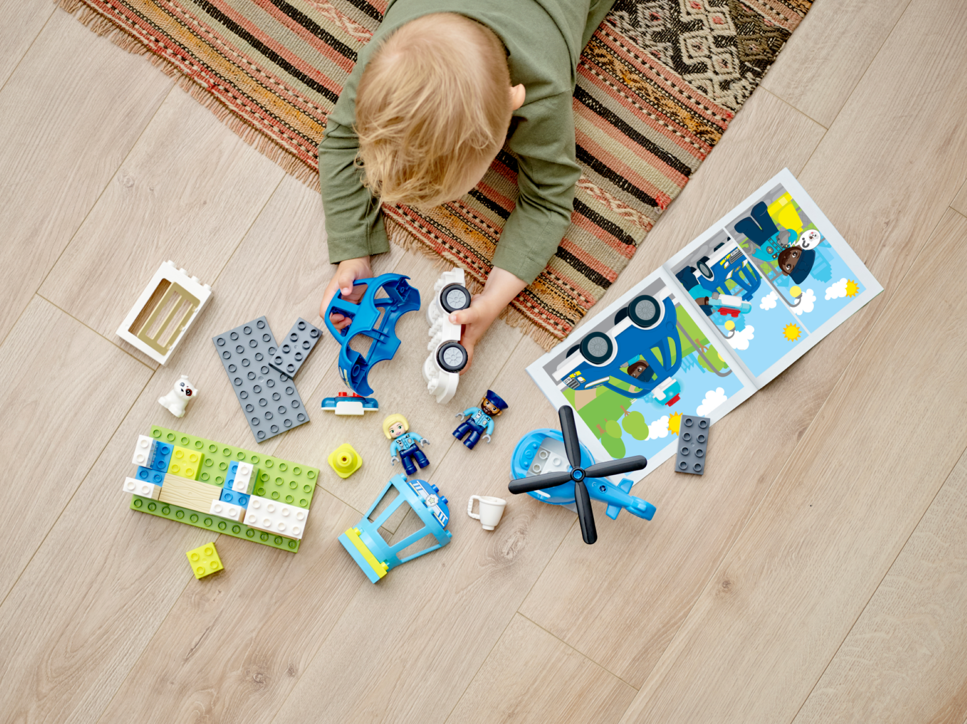 | 1 X Duplo, Brick 1 x 2 x 2 with Bottom Tube with Map of Town with Blue Police Car, White Dog, and Red Route Pattern | White |   |  |