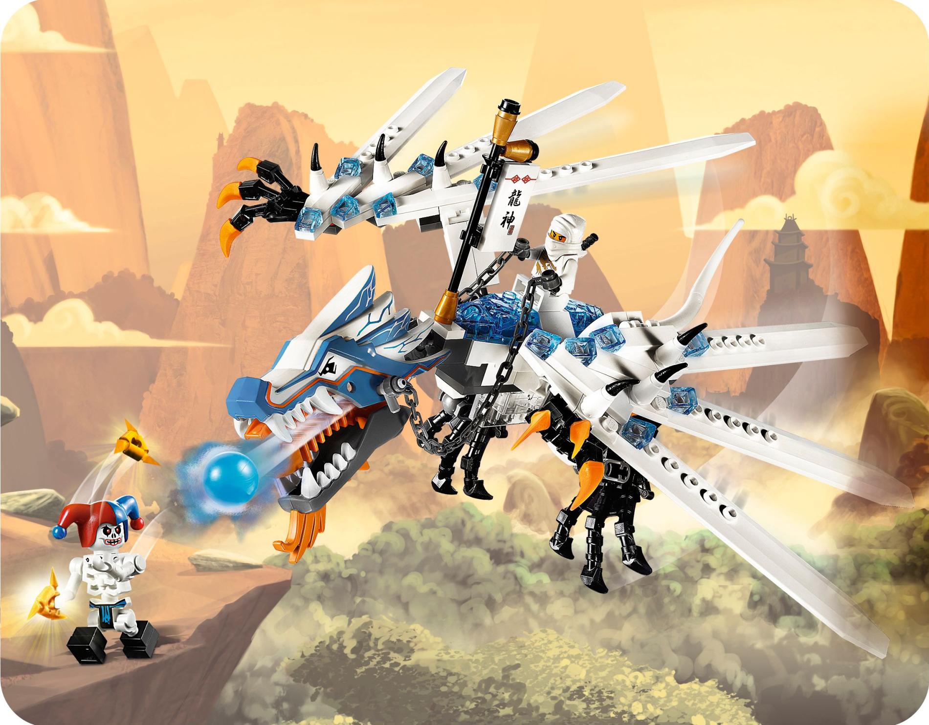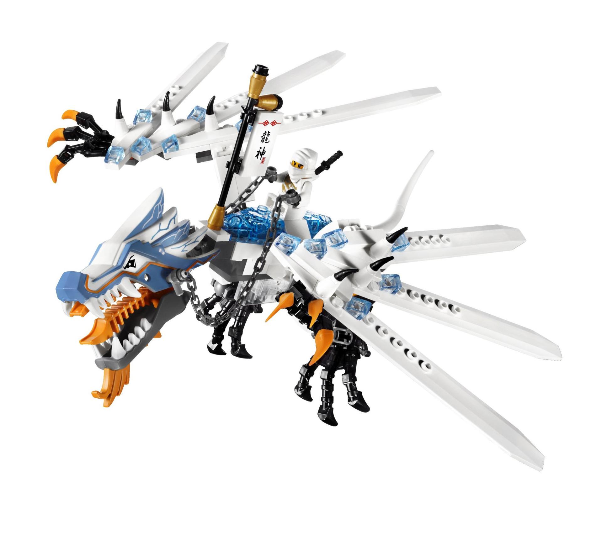 | 1 X Dragon Head (Ninjago) Upper Jaw with Medium Blue Sections and Orange Stripes Pattern | White |   |  |