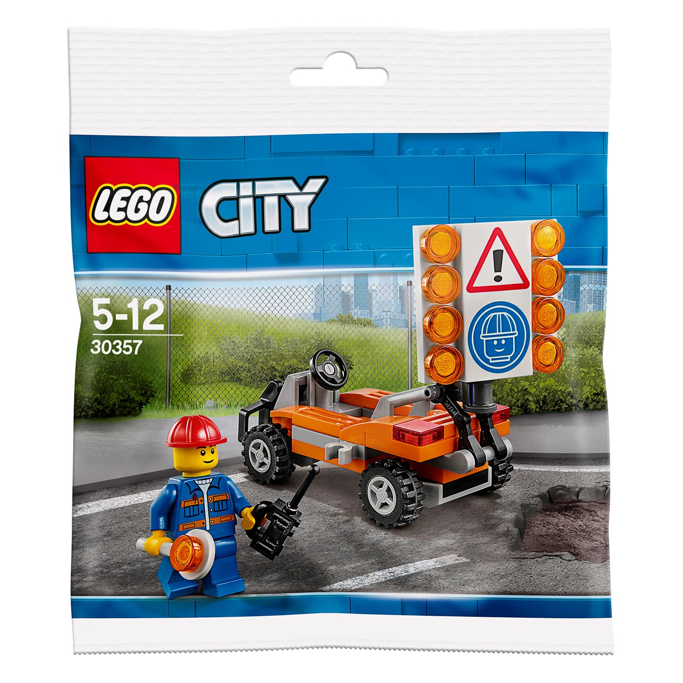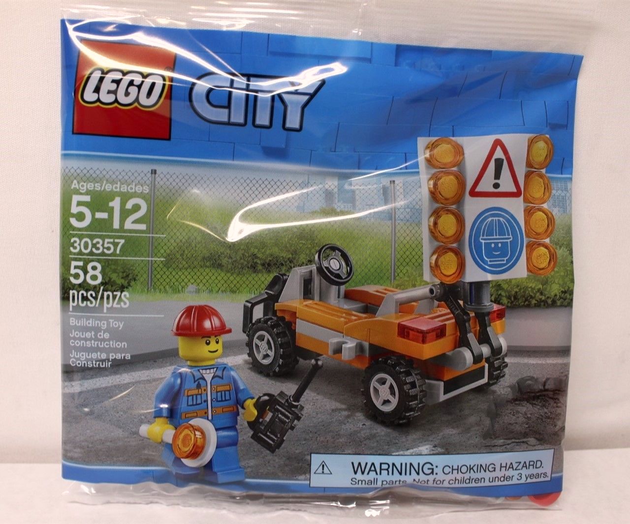 | 1 X Tile 2 x 4 with Exclamation Mark in Warning Triangle and Minifigure Head with Construction Helmet Pattern | White |   |  |