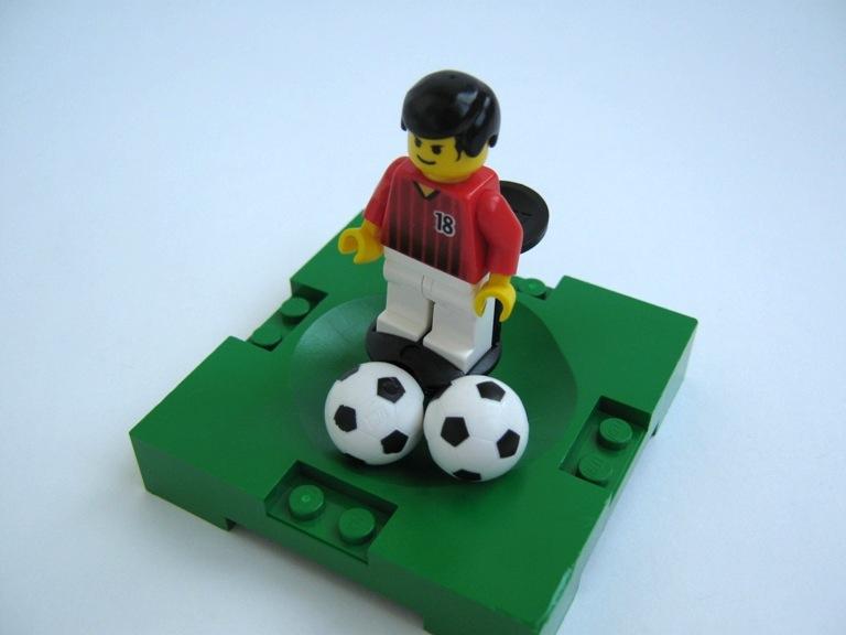Sports Minifig Stand Soccer with Spring and Green Pin (Complete Assembly)