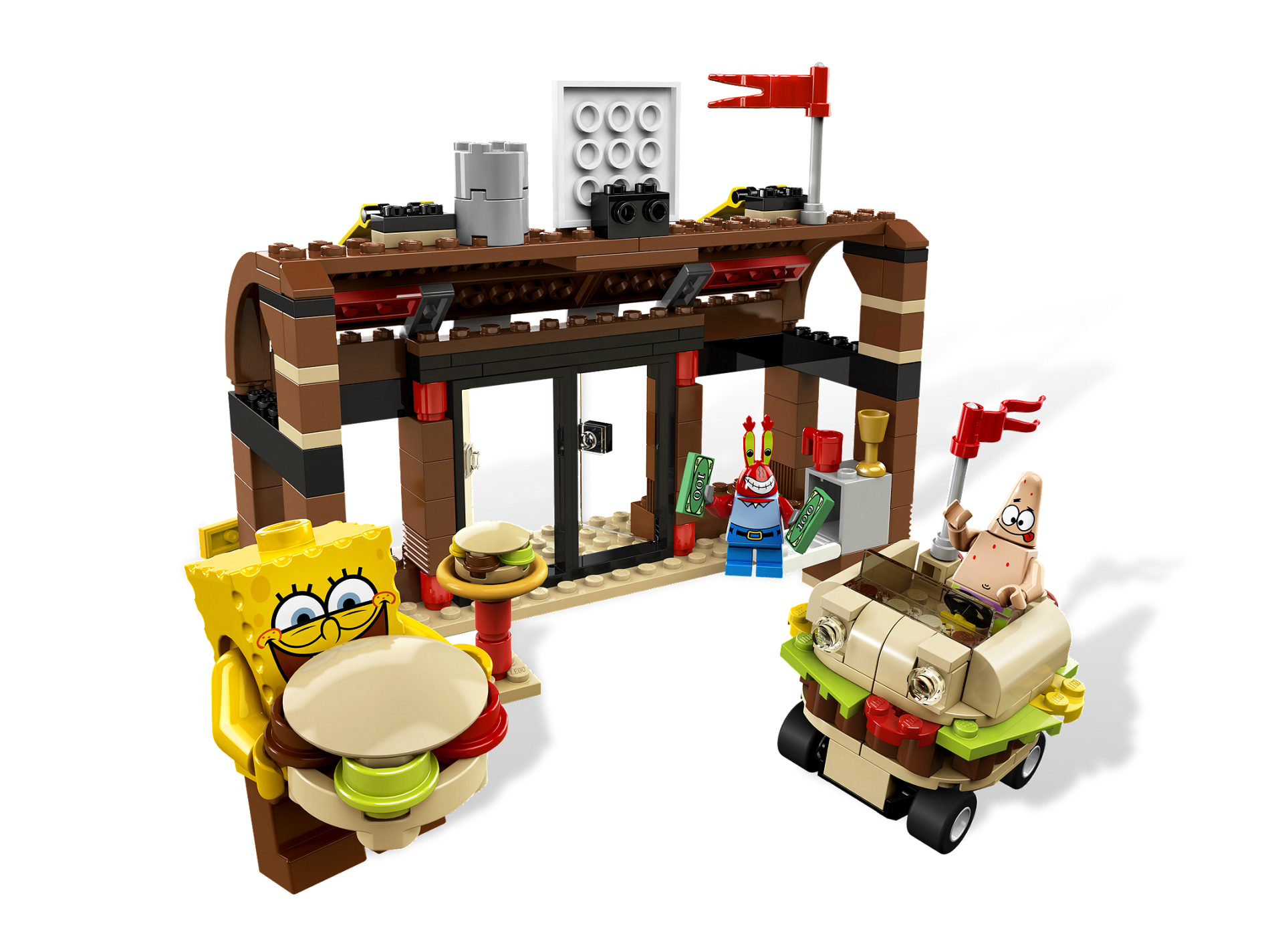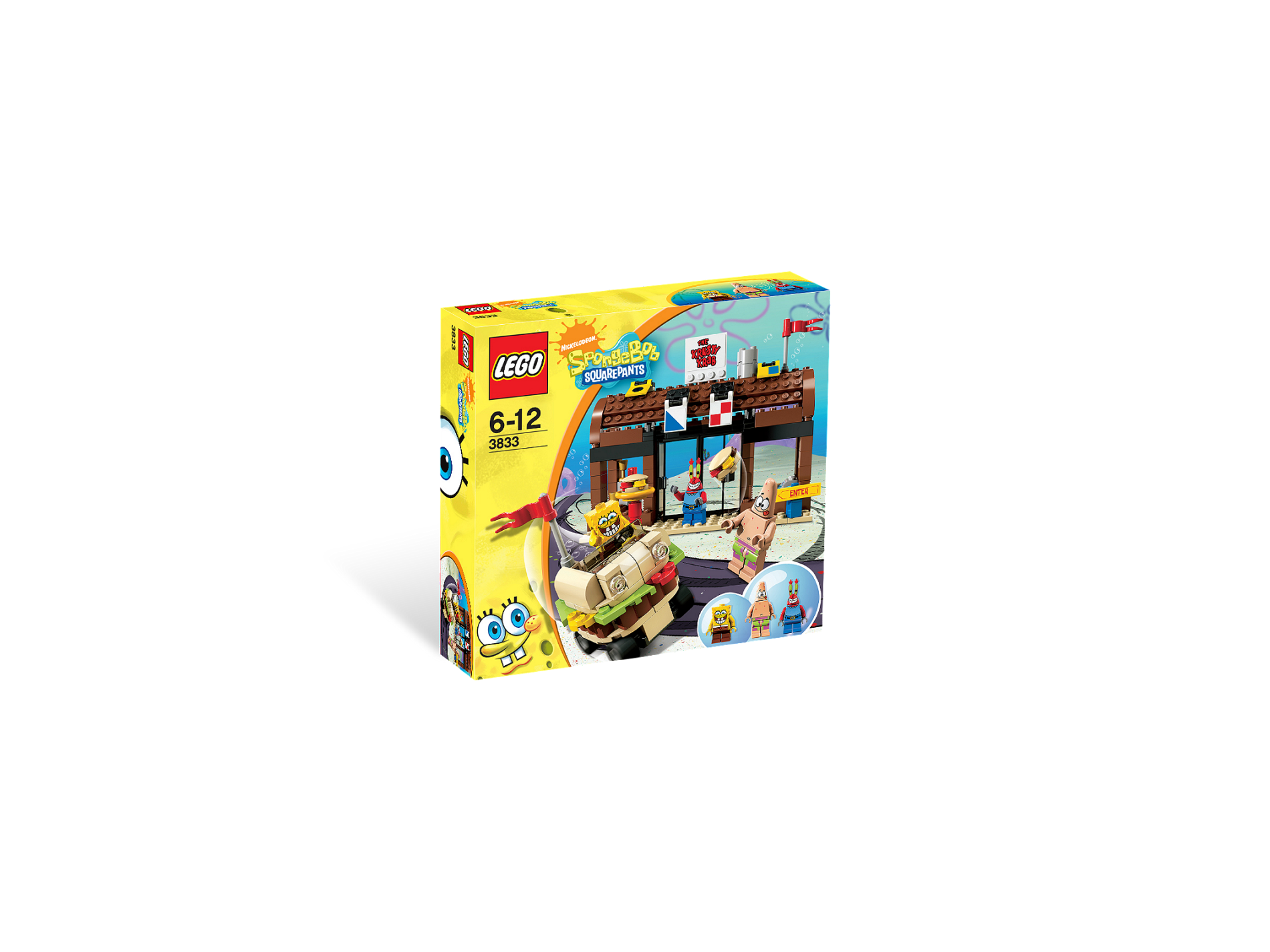 | 1 X Tile, Modified 4 x 4 with Studs on Edge with 'THE KRUSTY KRAB' with Black Outline Pattern (Sticker) - Set 3833 | White |   |  |