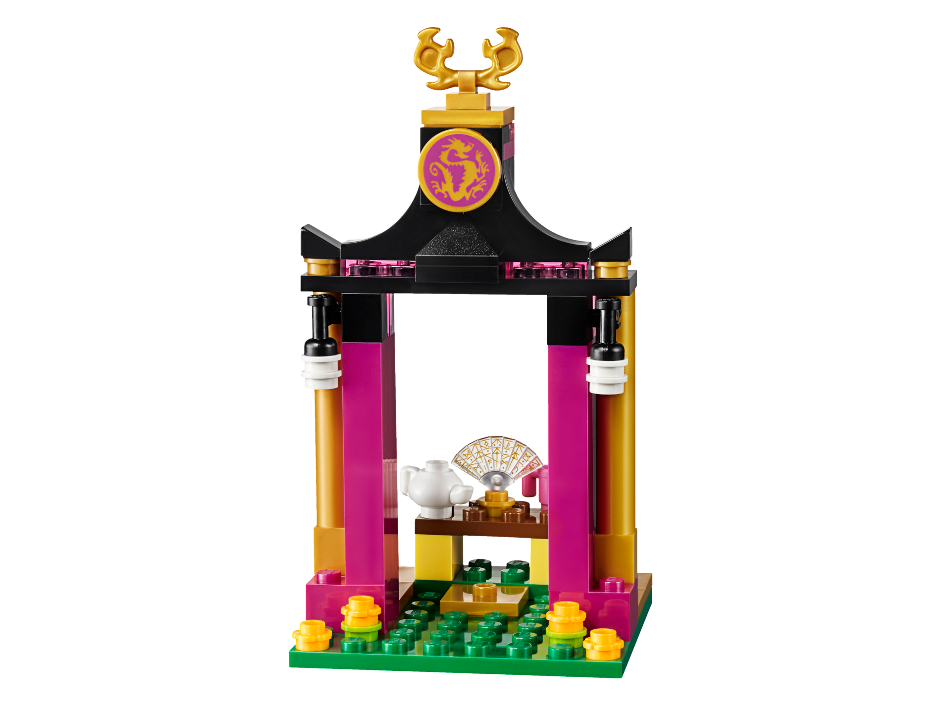 | 1 X Tile, Round 2 x 2 with Bottom Stud Holder with Pearl Gold Dragon on Magenta Background Pattern | Pearl Gold |   |  |