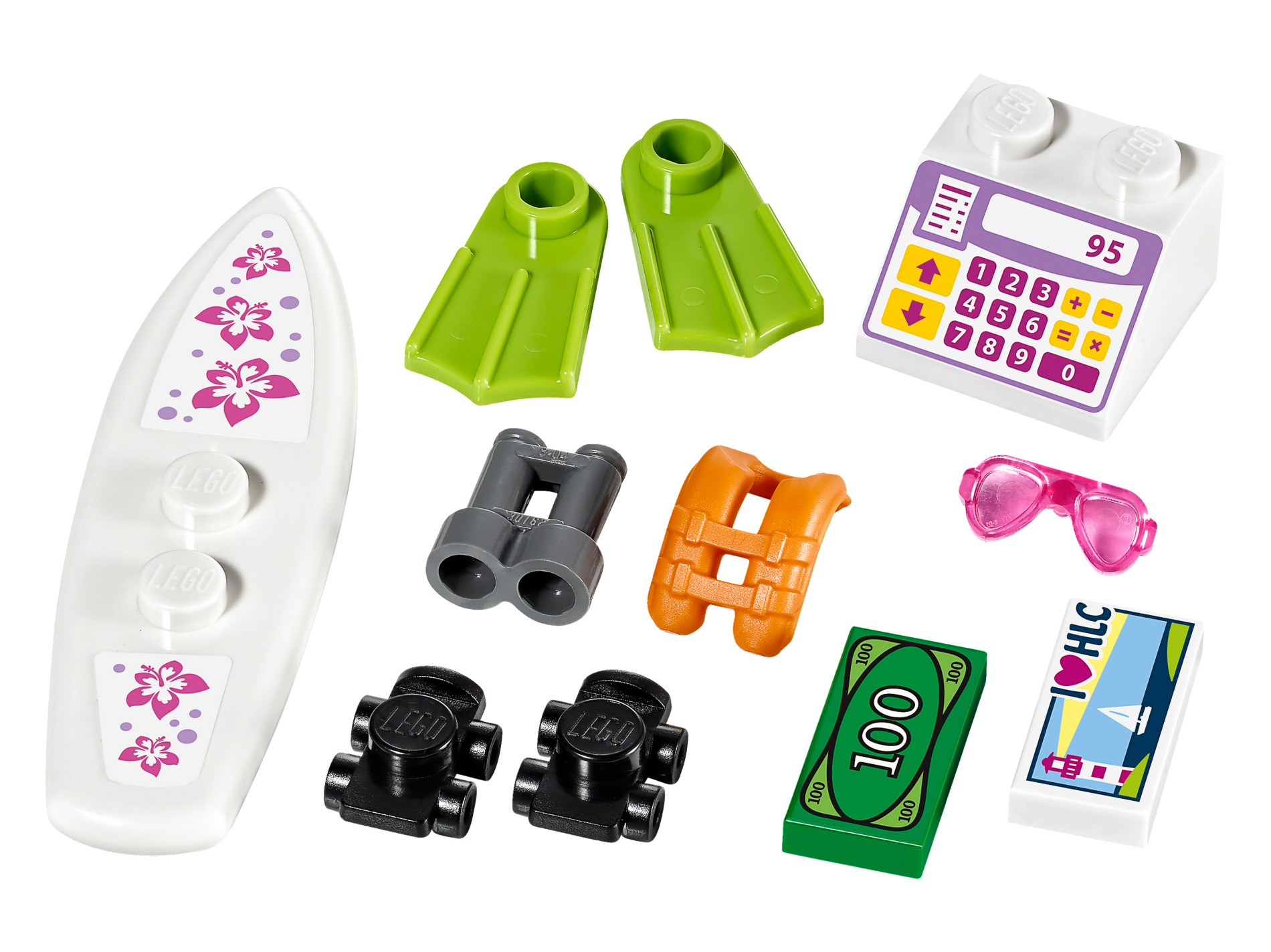 | 1 X Minifigure, Utensil Surfboard Standard with Flower Pattern (Stickers) - Set 41315 | White |   |  |