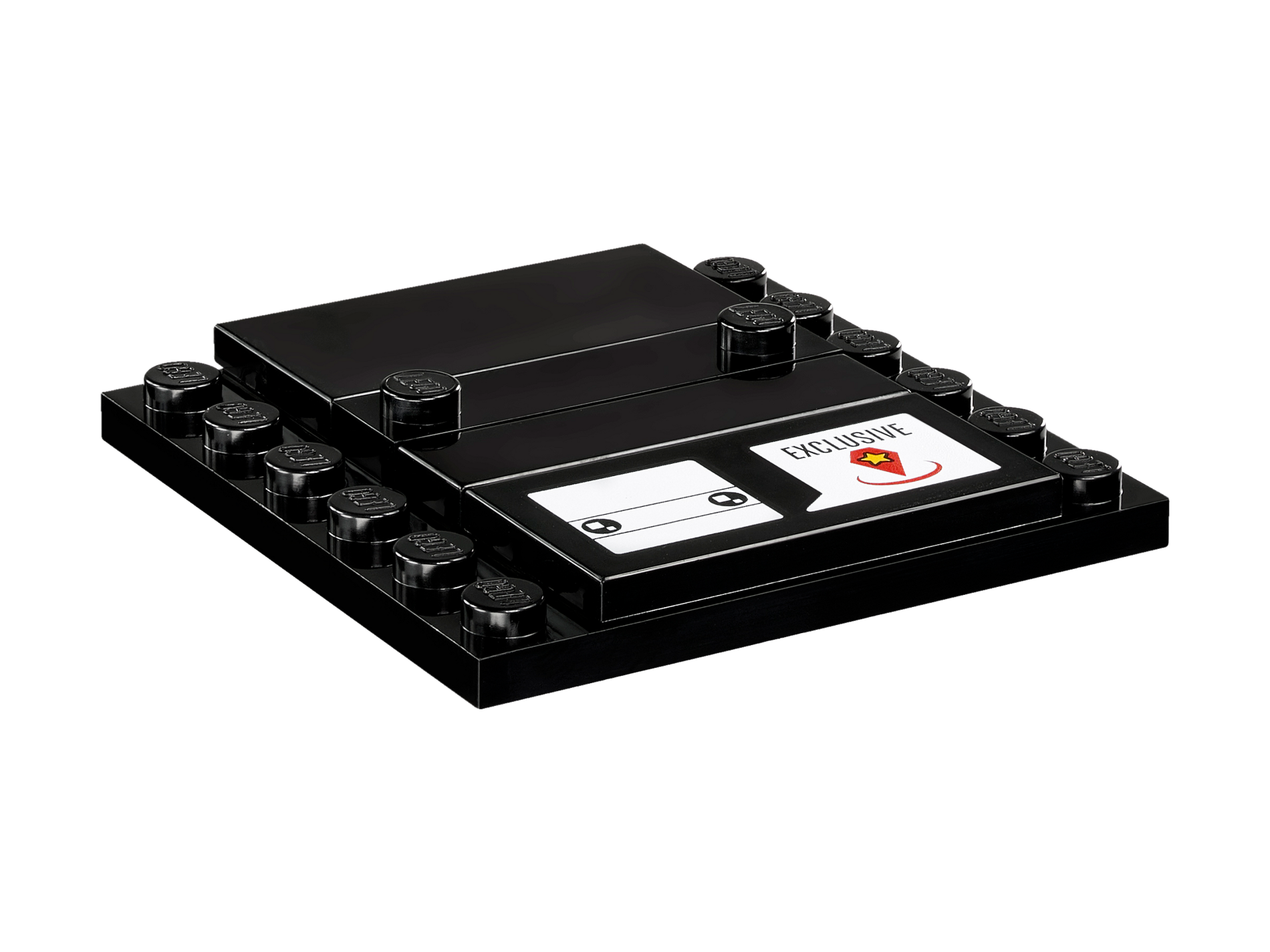 | 1 X Tile 2 x 4 with White BrickHeadz Head and Word Balloon with 'EXCLUSIVE' and Yellow Star on Red Jewel Pattern | Black |   |  |