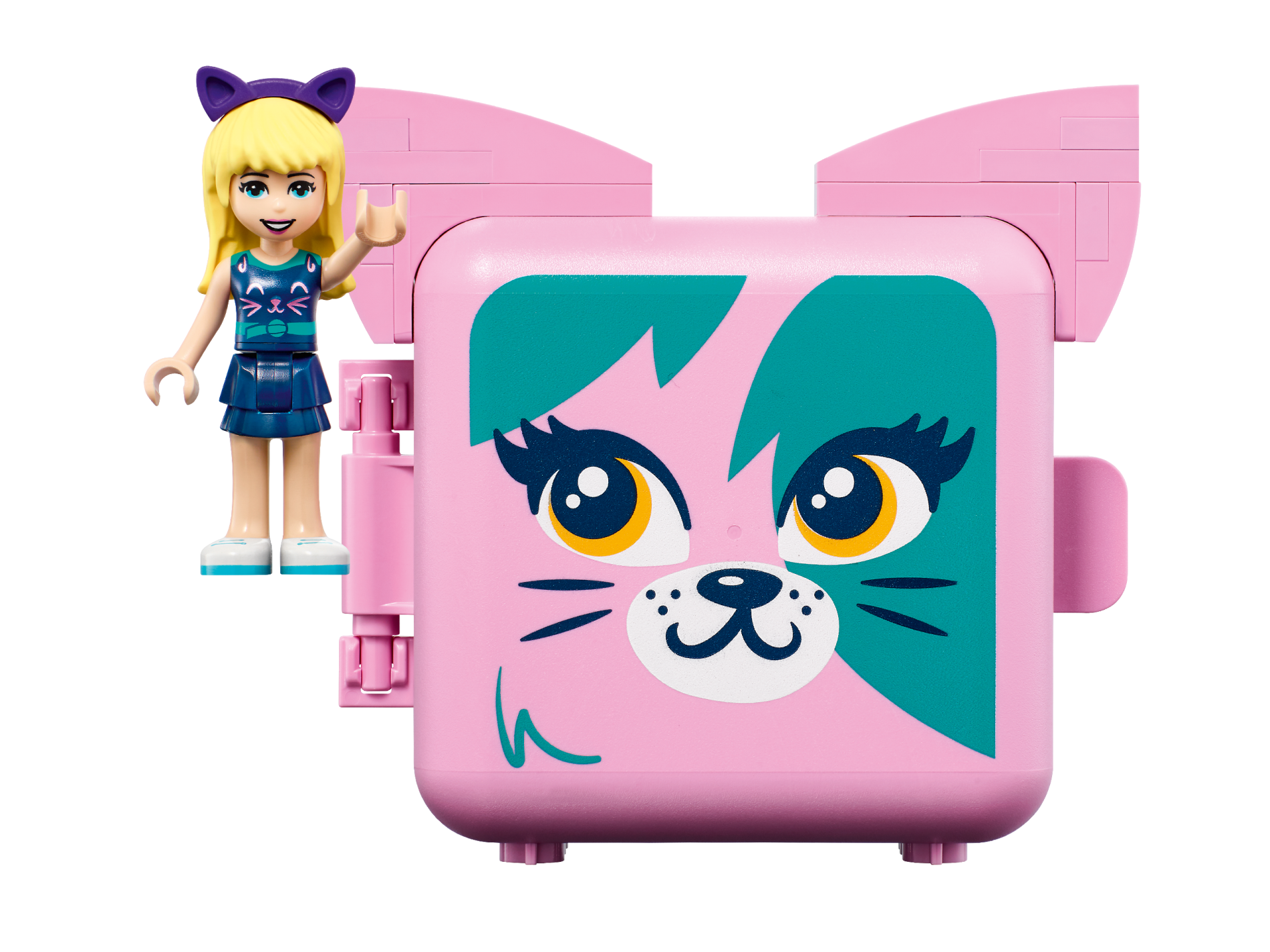 | 1 X Container, Box 3 x 8 x 6 2/3 Half Front with Cat Face with Dark Turquoise Splotches Pattern | Bright Pink |   |  |
