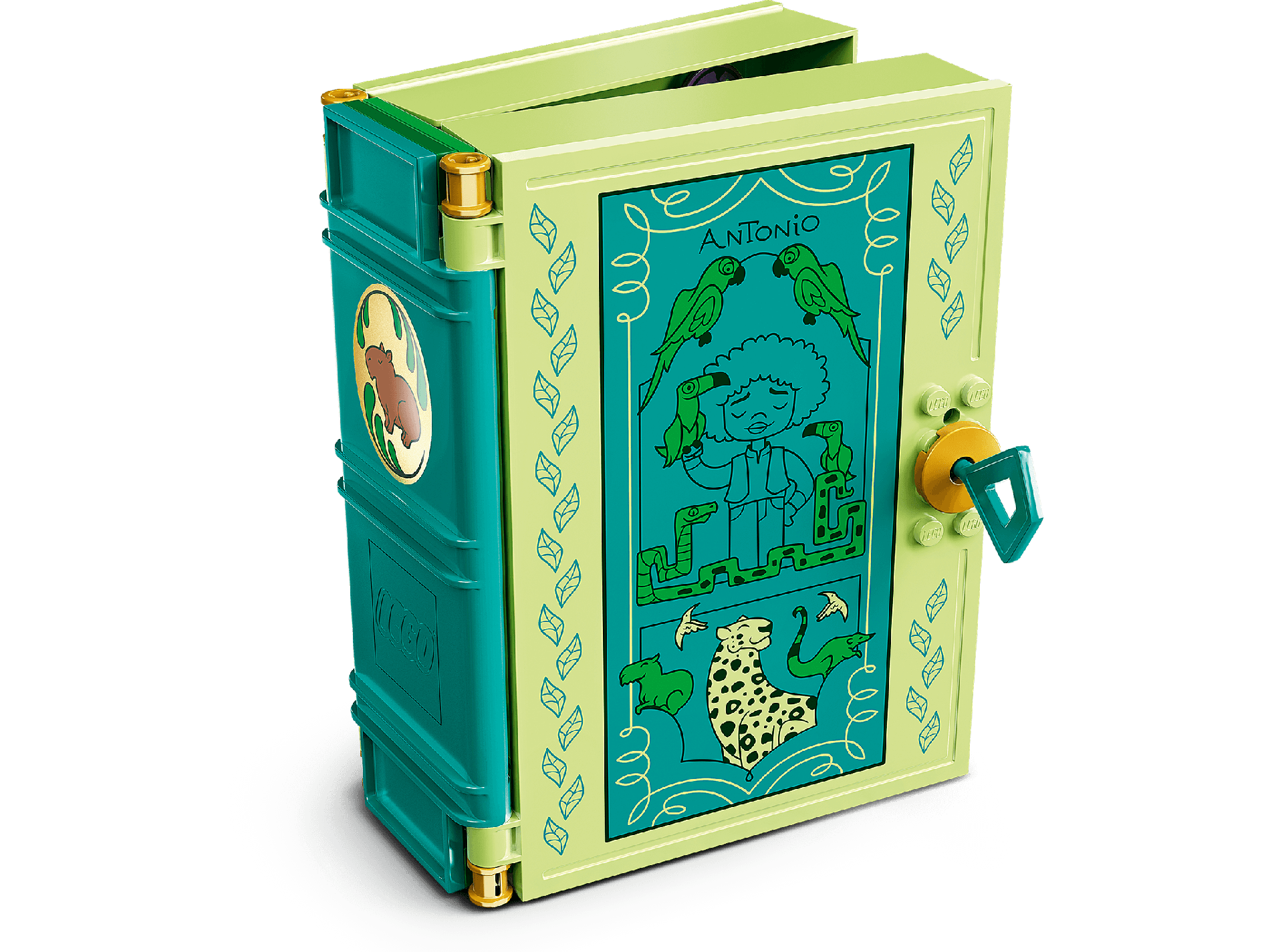 | 1 X Container, Book Cover Half, 16 x 12 x 2 2/3 with Lock Compartment (Storybook Adventures) with 'ANTONIO', Animals, Dark Turquoise Panel Pattern | Yellowish Green |   |  |