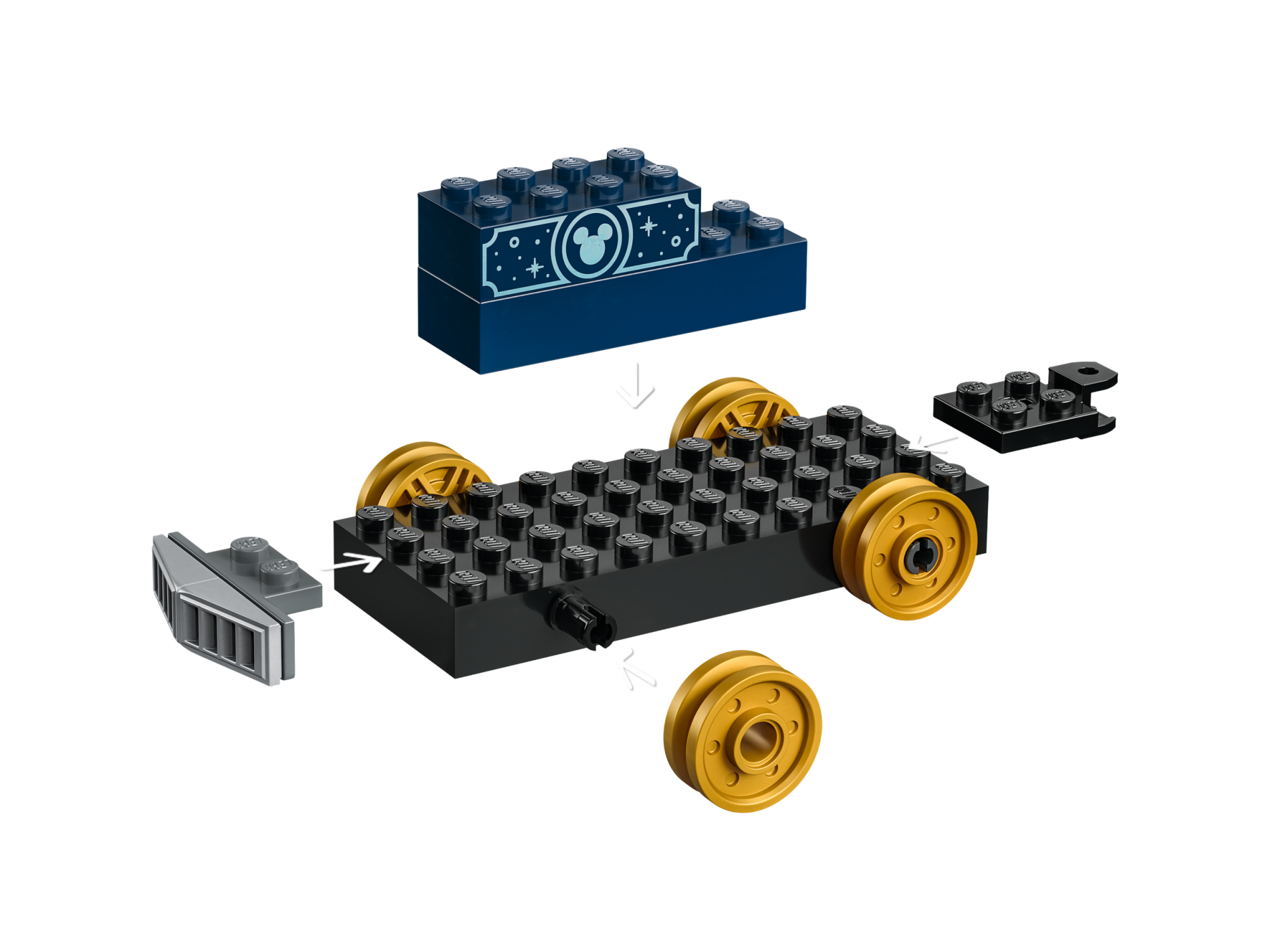 | 1 X Brick 2 x 4 with Metallic Light Blue Mickey Mouse Head, Circles and Sparkles Pattern on Both Sides | Dark Blue |   |  |