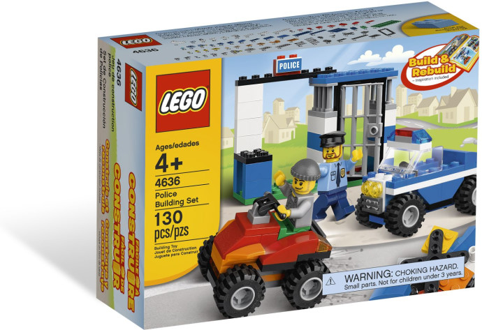 It's goodies vs baddies with the LEGO Bricks & More Police Building Set (4636)! Enter the exciting world of goodies versus baddies. Use the easy-to-follow instructions and 130 colourful elements to create great themed models, like a jail, police car, ATV, helicopter and sports car.