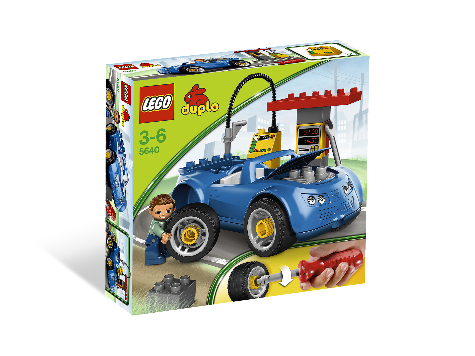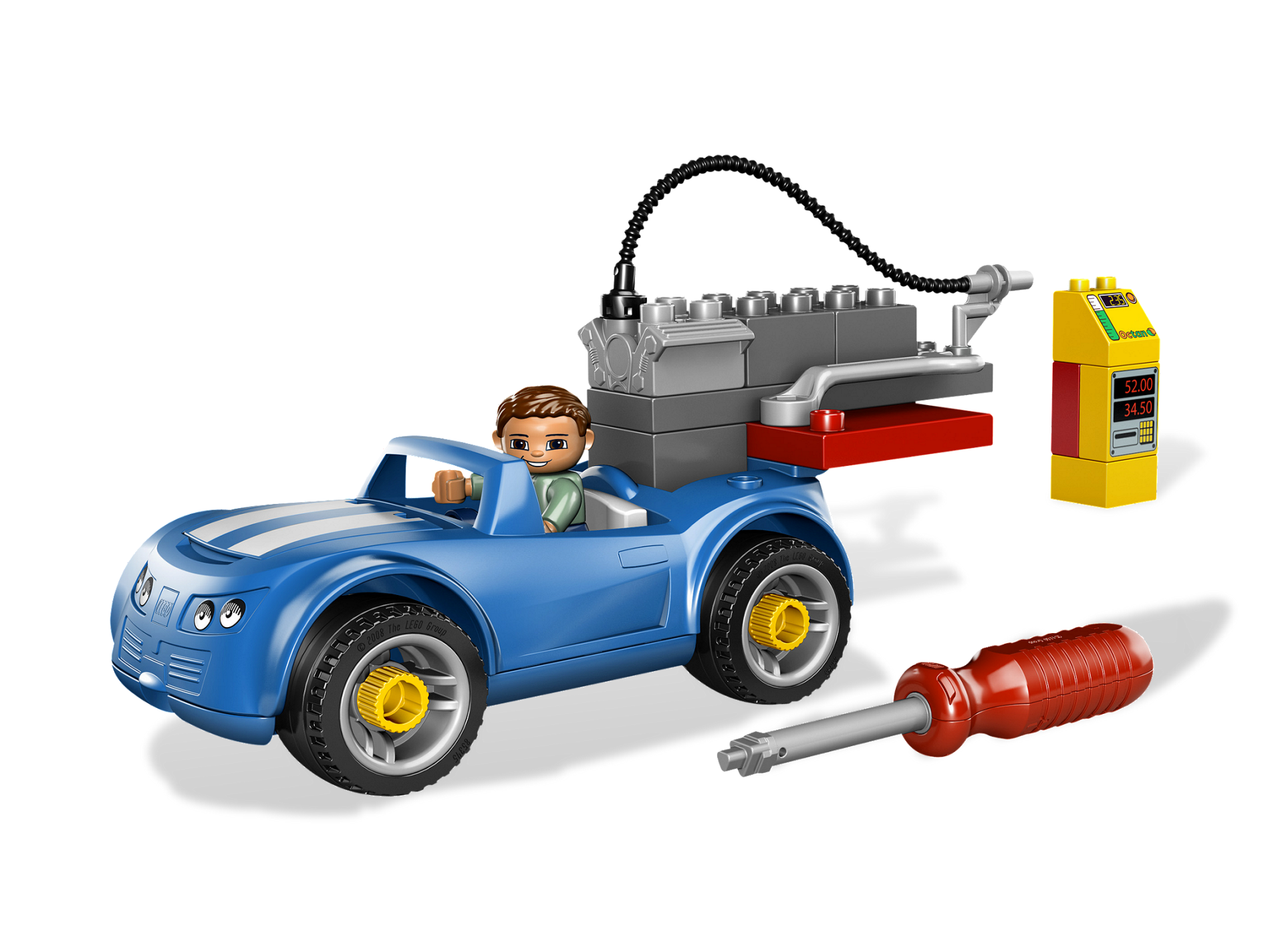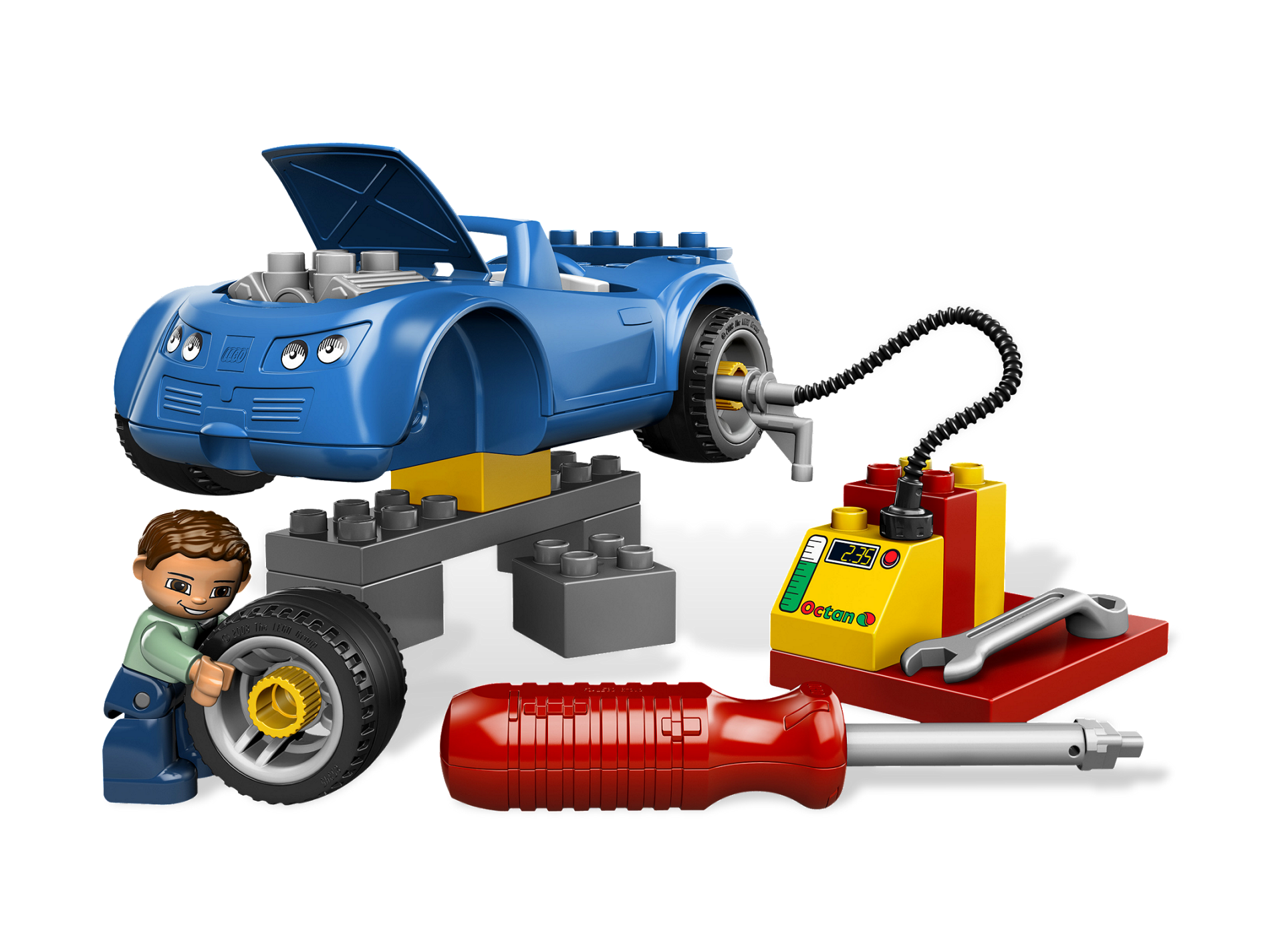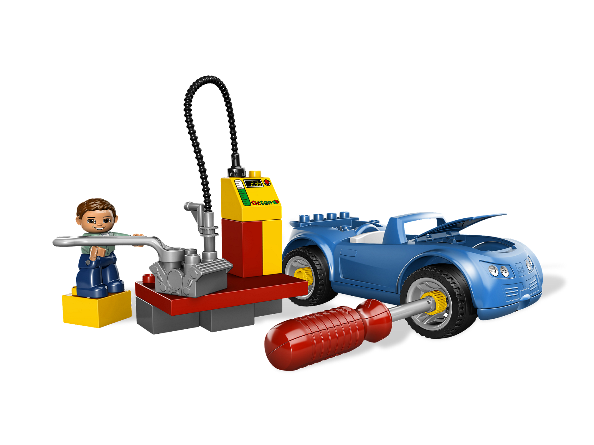 Out of gas? Visit the petrol station to fill up the car! And that's not all you can do. Use the child-safe screwdriver to remove the wheels or use the wrench to take out the engine for a tune-up! DUPLO pieces are sturdy and fun for younger builders. Includes gas station, 1 DUPLO figure, screwdriver & wrench! Young builders can imitate real life at the petrol station! Extended functionality - use the screwdriver to remove the wheels or the use wrench on the engine!