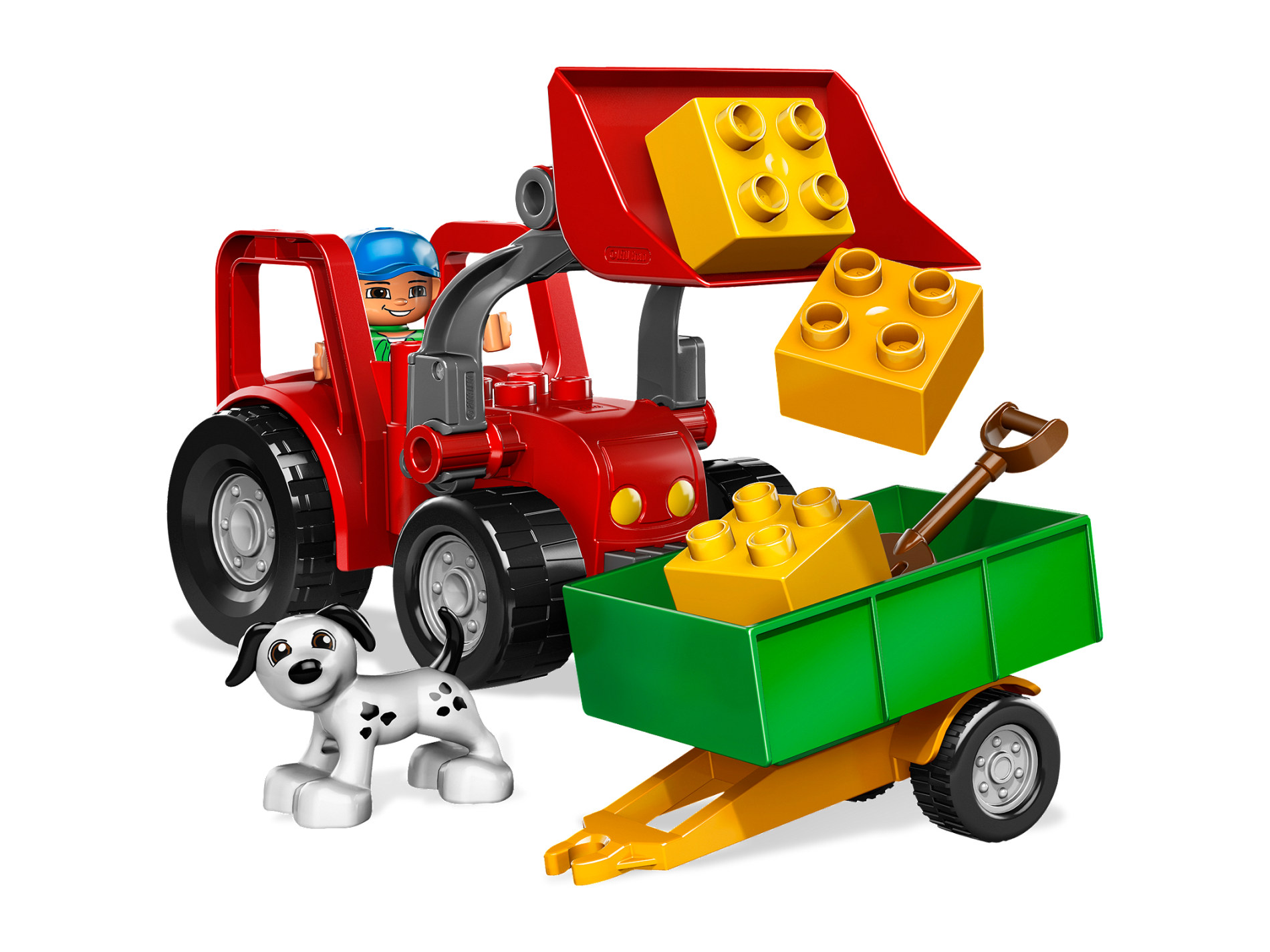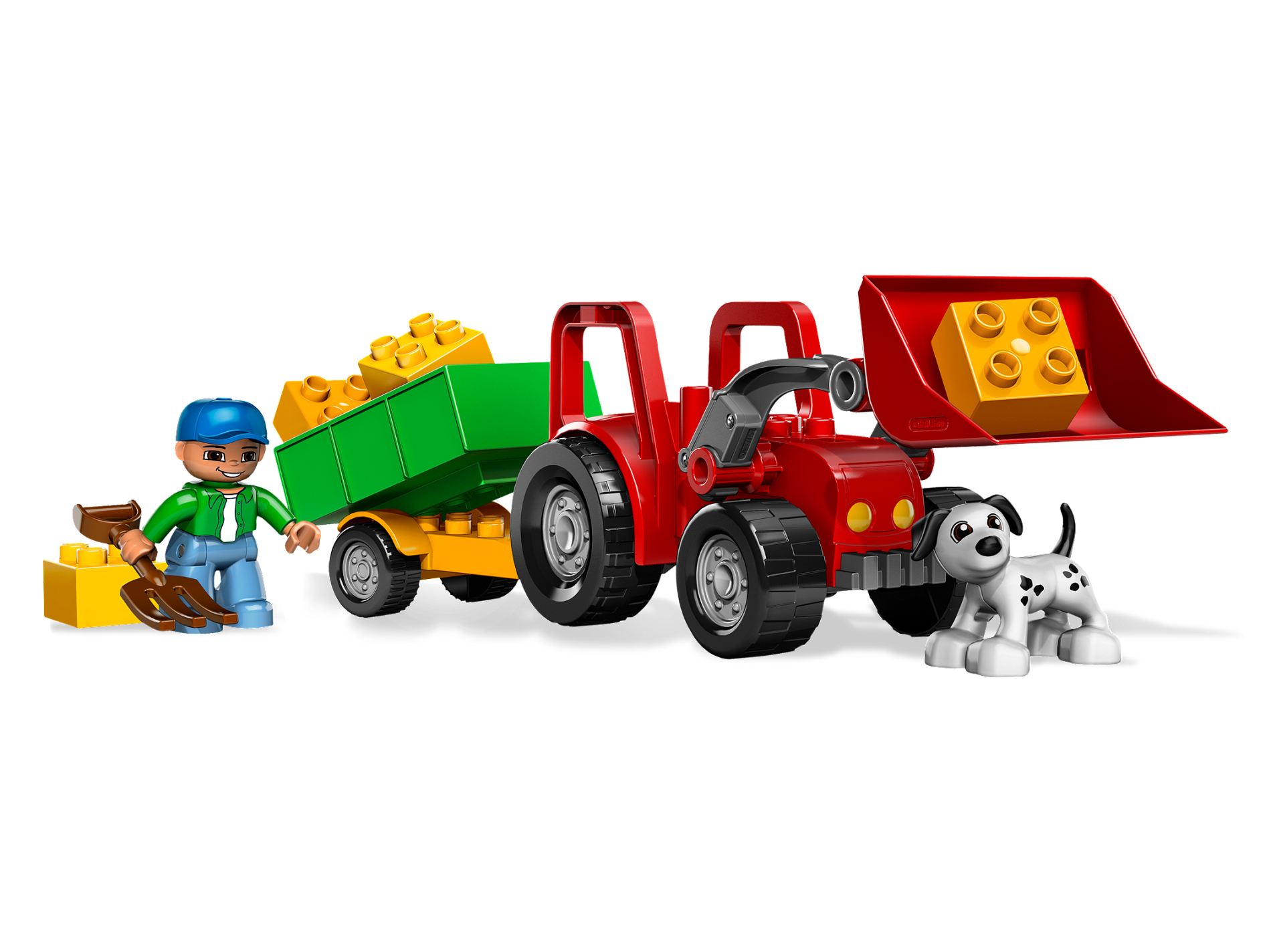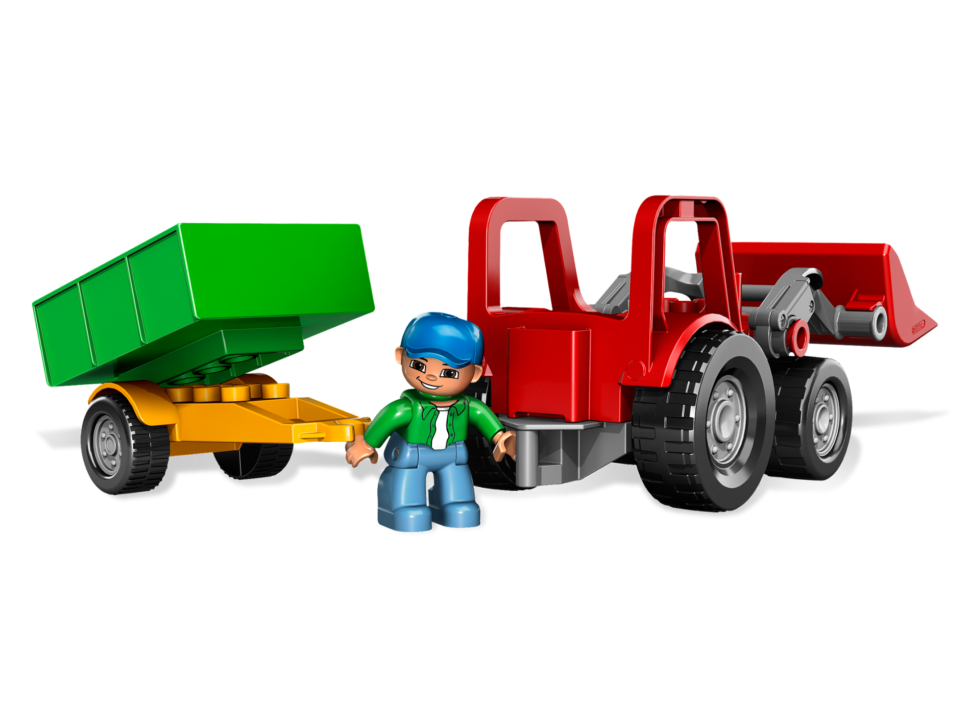 Duplo Farm Tractor New Style with 2 x 2 Studs on Hood and Yellow Headlights Pattern