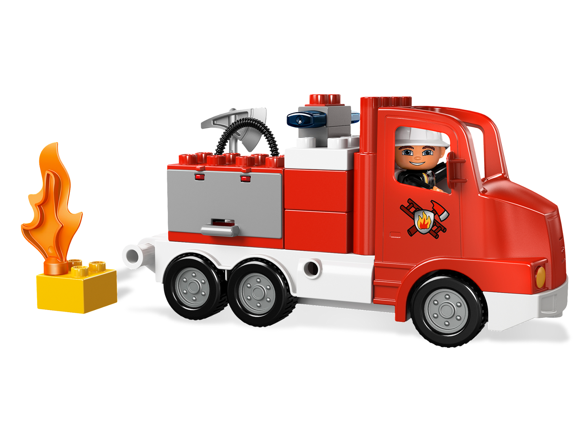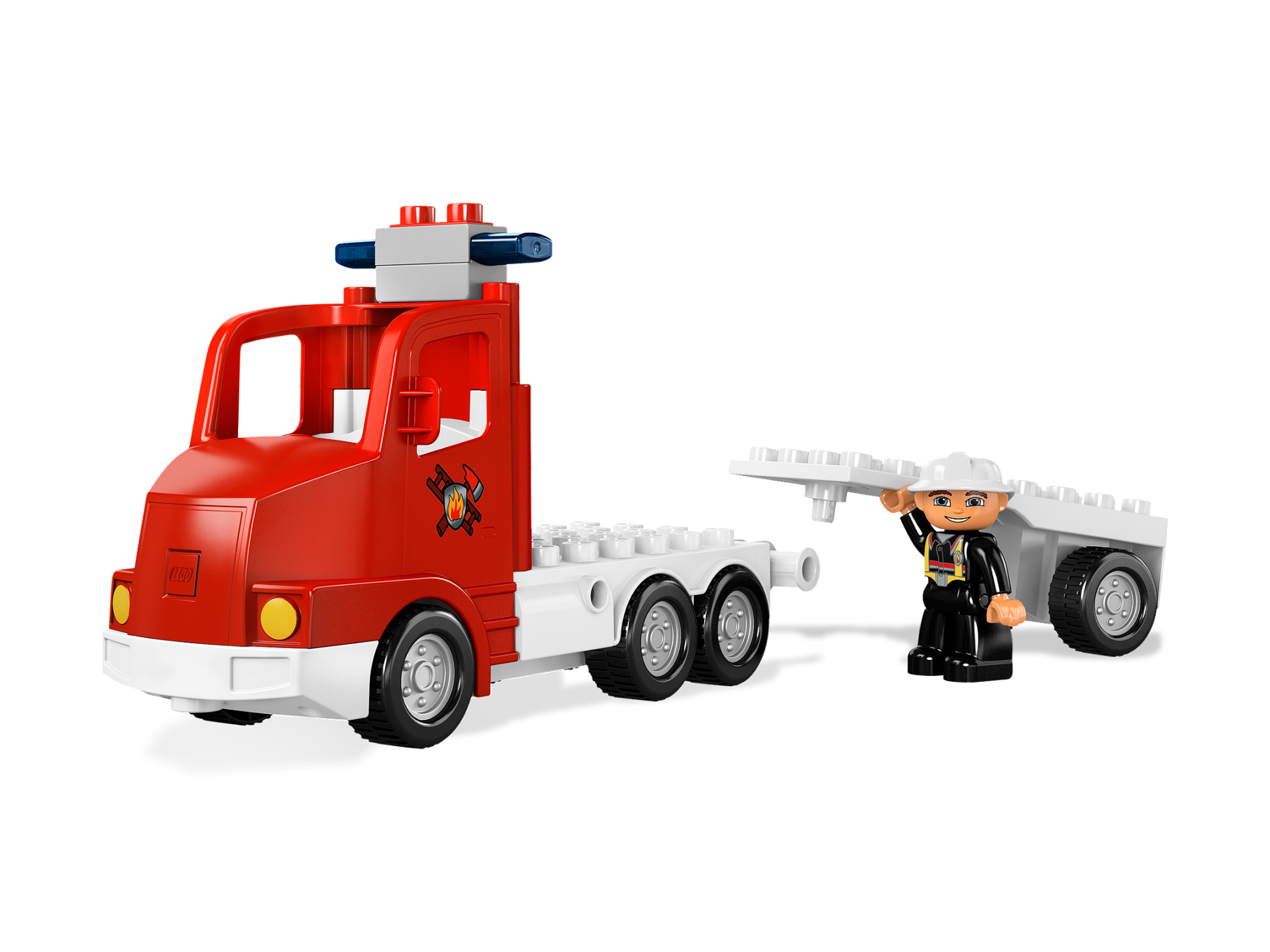 Duplo Truck Large Cab with White 4 x 8 Flatbed Plate and Fire Logo Pattern