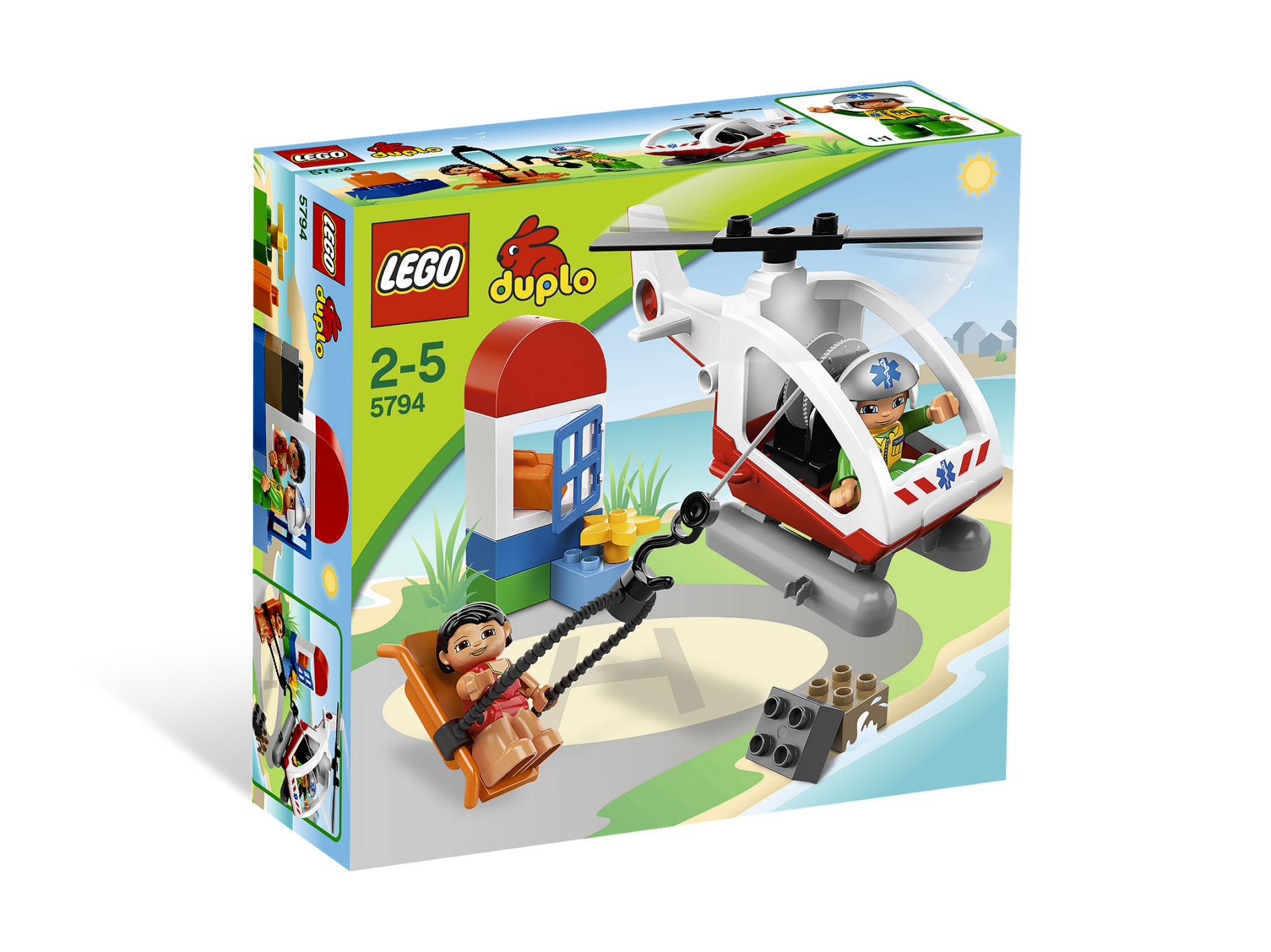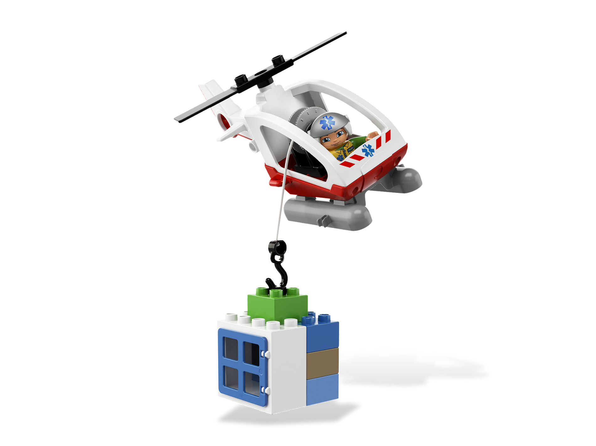 Duplo Helicopter Body Medium with Cabin (Skids not Removable) with Red Base and EMT Star of Life Pattern