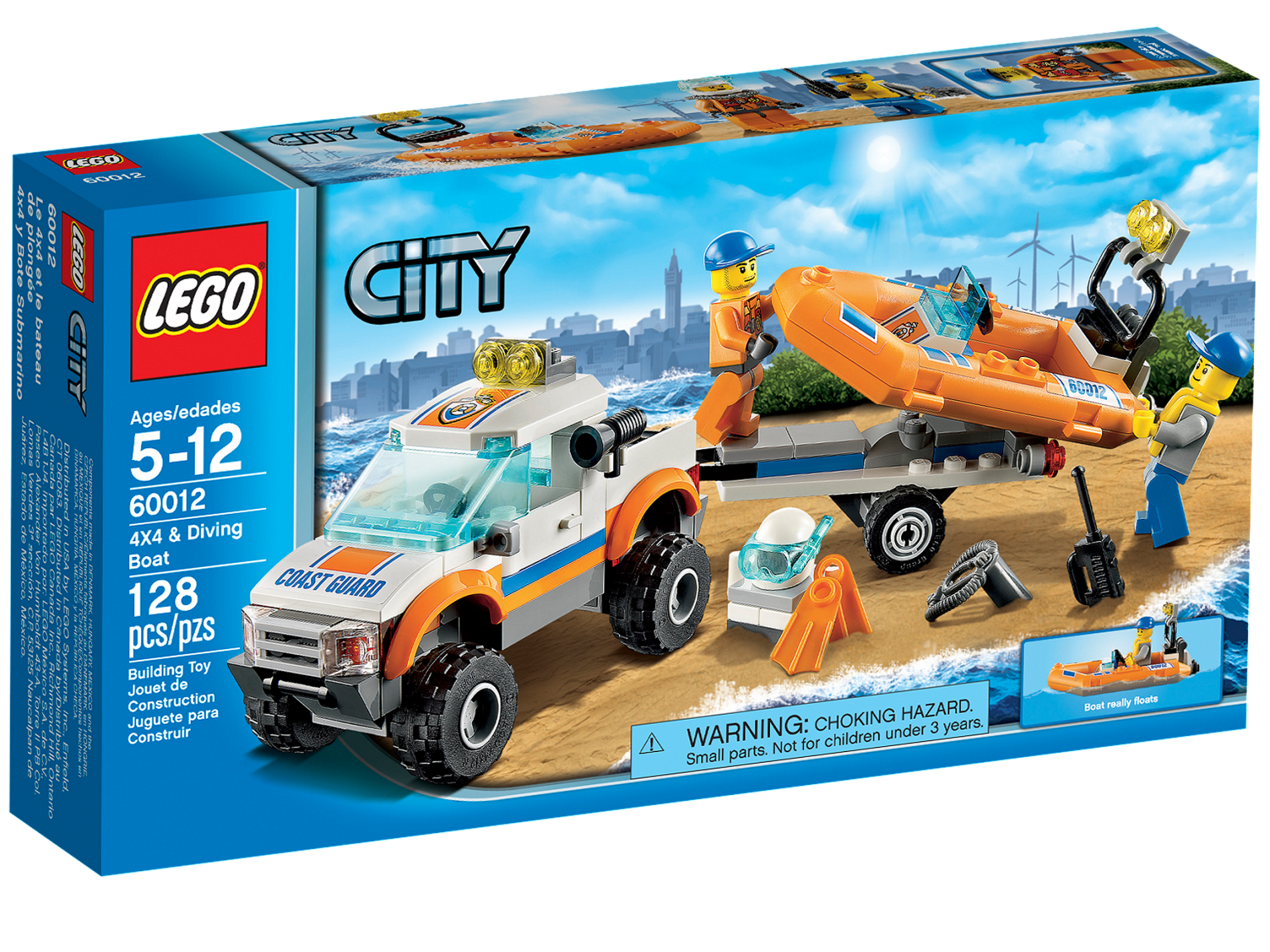 | 1 X Boat, Rubber Raft, Small with Blue Stripes and '60012' Pattern on Both Sides (Stickers) - Set 60012 | Orange |   |  |