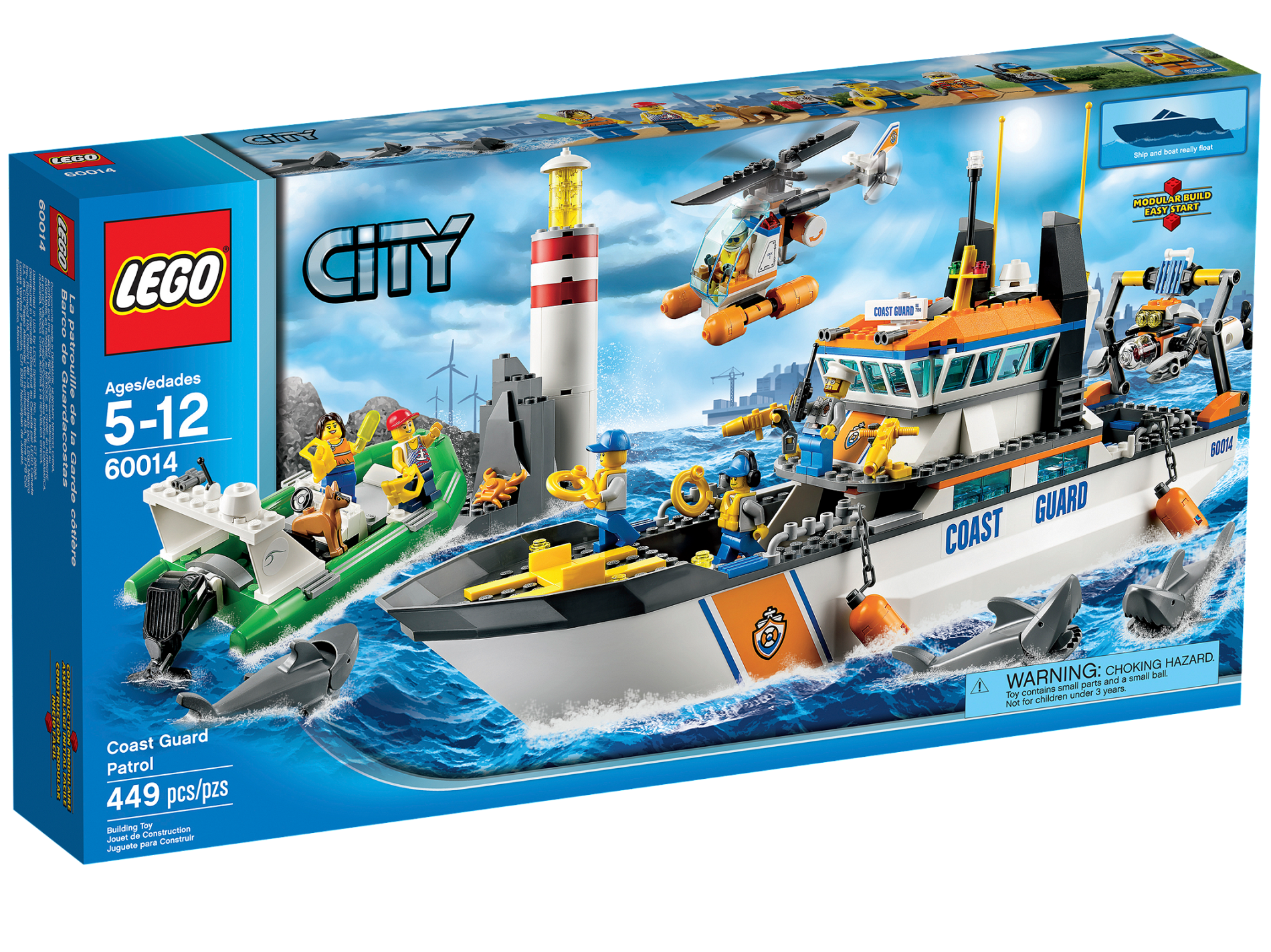 | 1 X Boat Hull Unitary 51 x 12 x 6 with Side Bulges and Dark Bluish Gray Top Complete Assembly with Coast Guard Pattern on Both Sides (Stickers) - Set 60014 | White |   |  |