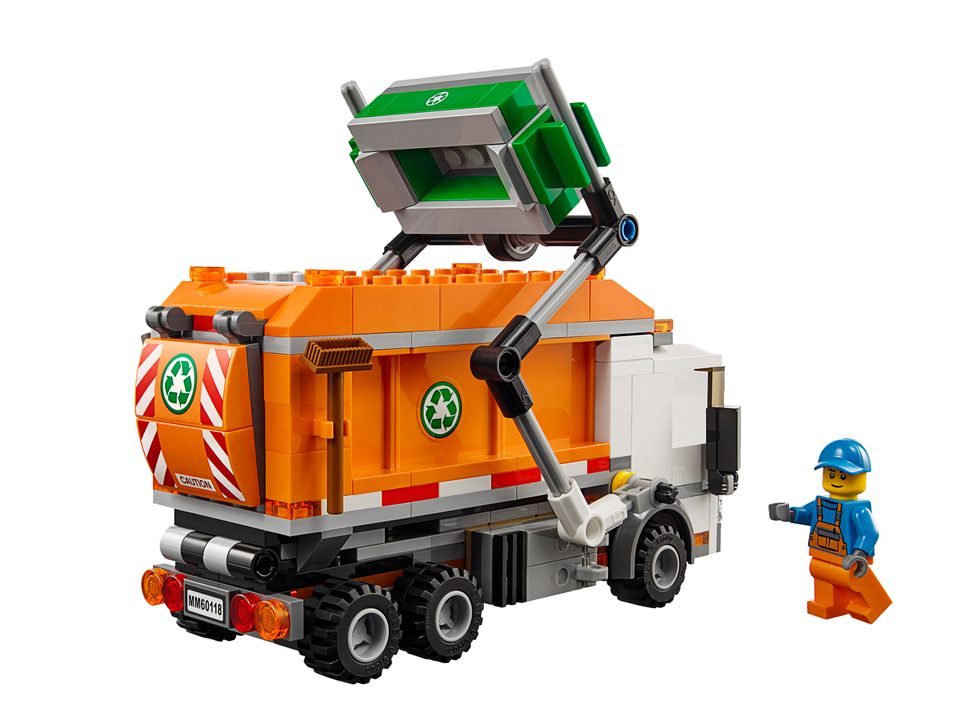 | 1 X Slope, Curved 2 x 4 x 2/3 No Studs with Bottom Tubes with Recycling Arrows and Red and White Danger Stripes Pattern (Sticker) - Set 60118 | Orange |   |  |
