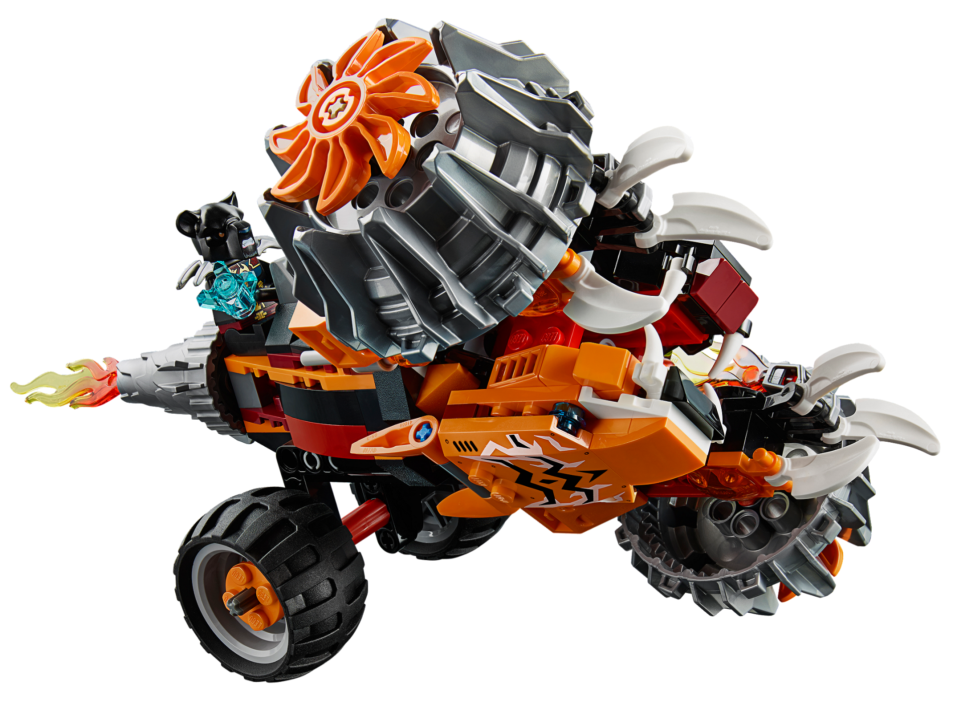 | 1 X Plate, Modified 1 x 4 with 2 Studs with Silver Vent and Red and Yellow Flame on Trans-Clear Background Pattern Model Left Side (Sticker) - Set 70222 | Black |   |  |