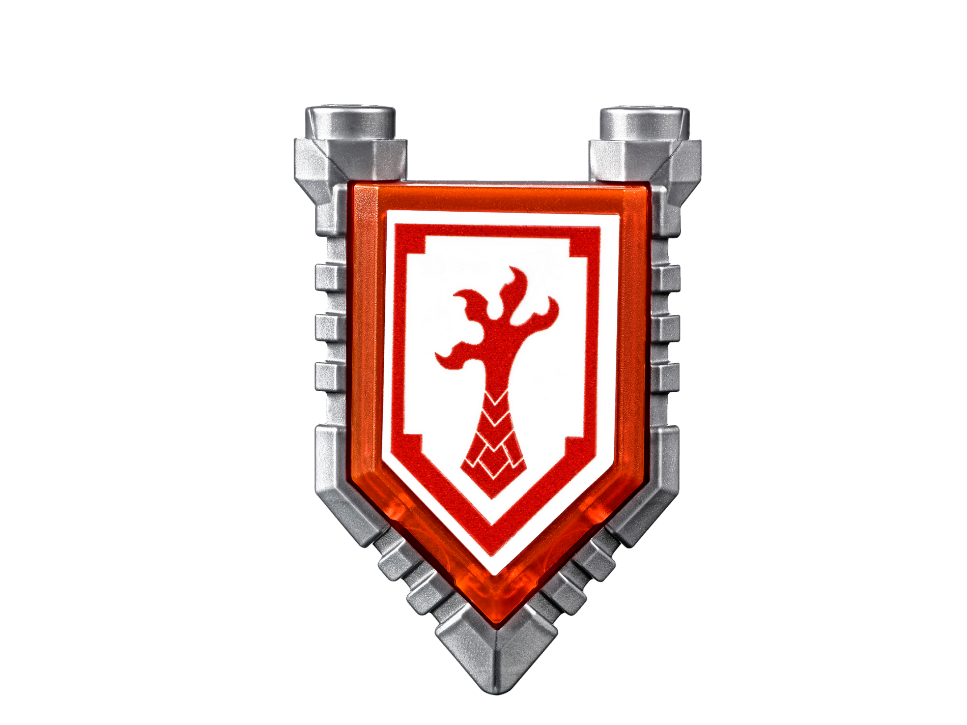 | 1 X Tile, Modified 2 x 3 Pentagonal with Nexo Power Shield Pattern - Clapper Claw | Trans-Neon Orange |   |  |