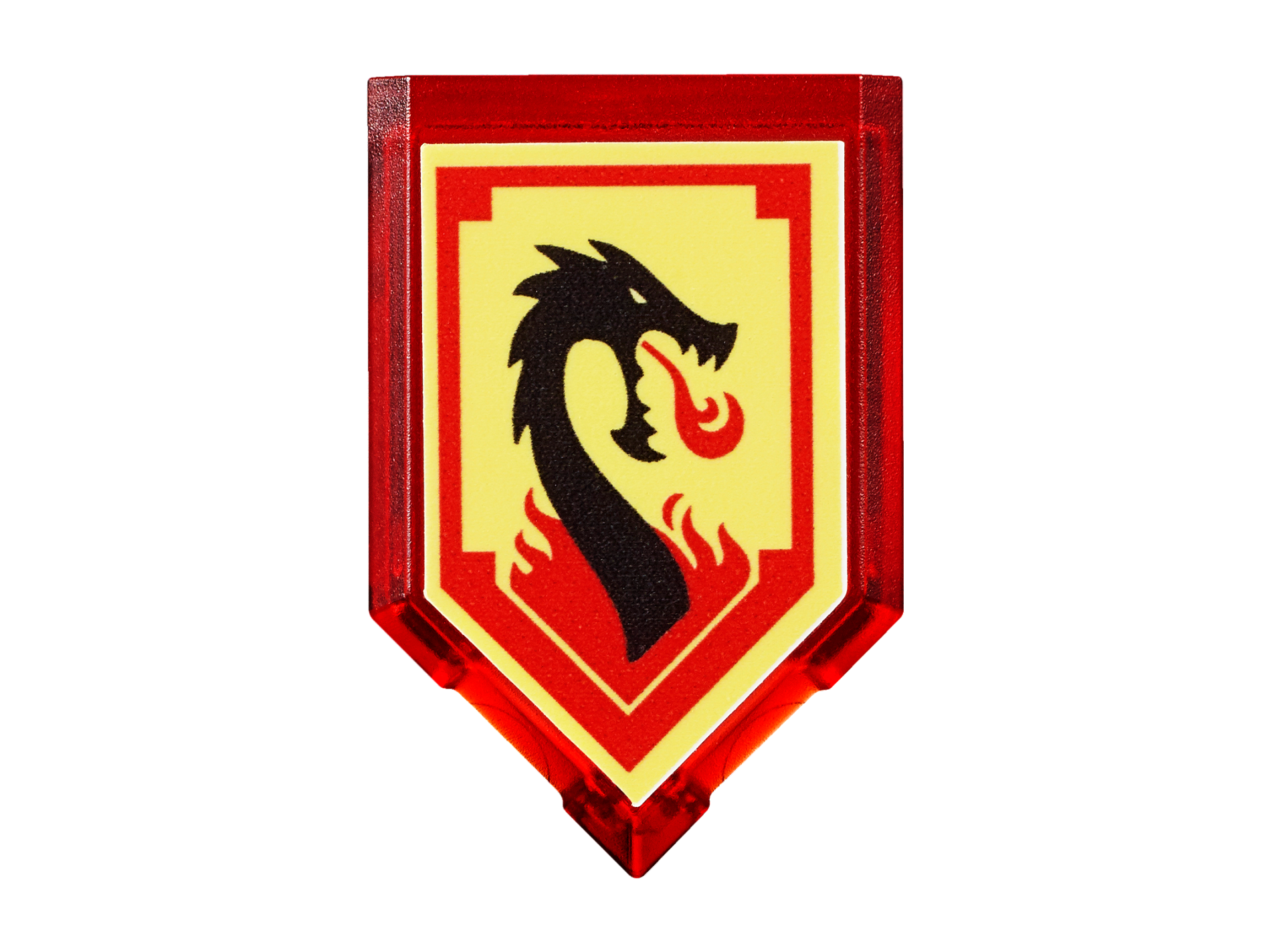 | 1 X Tile, Modified 2 x 3 Pentagonal with Nexo Power Shield Pattern - Lava Dragon | Trans-Red |   |  |