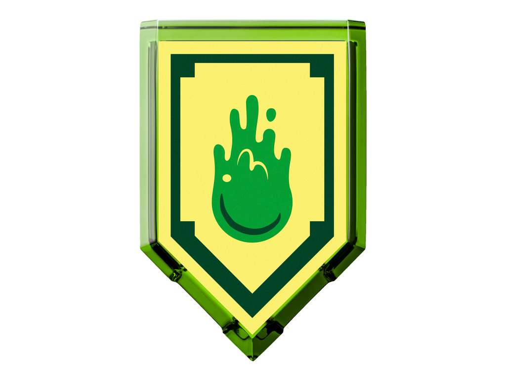 | 1 X Tile, Modified 2 x 3 Pentagonal with Nexo Power Shield Pattern - Slime Blast | Trans-Bright Green |   |  |