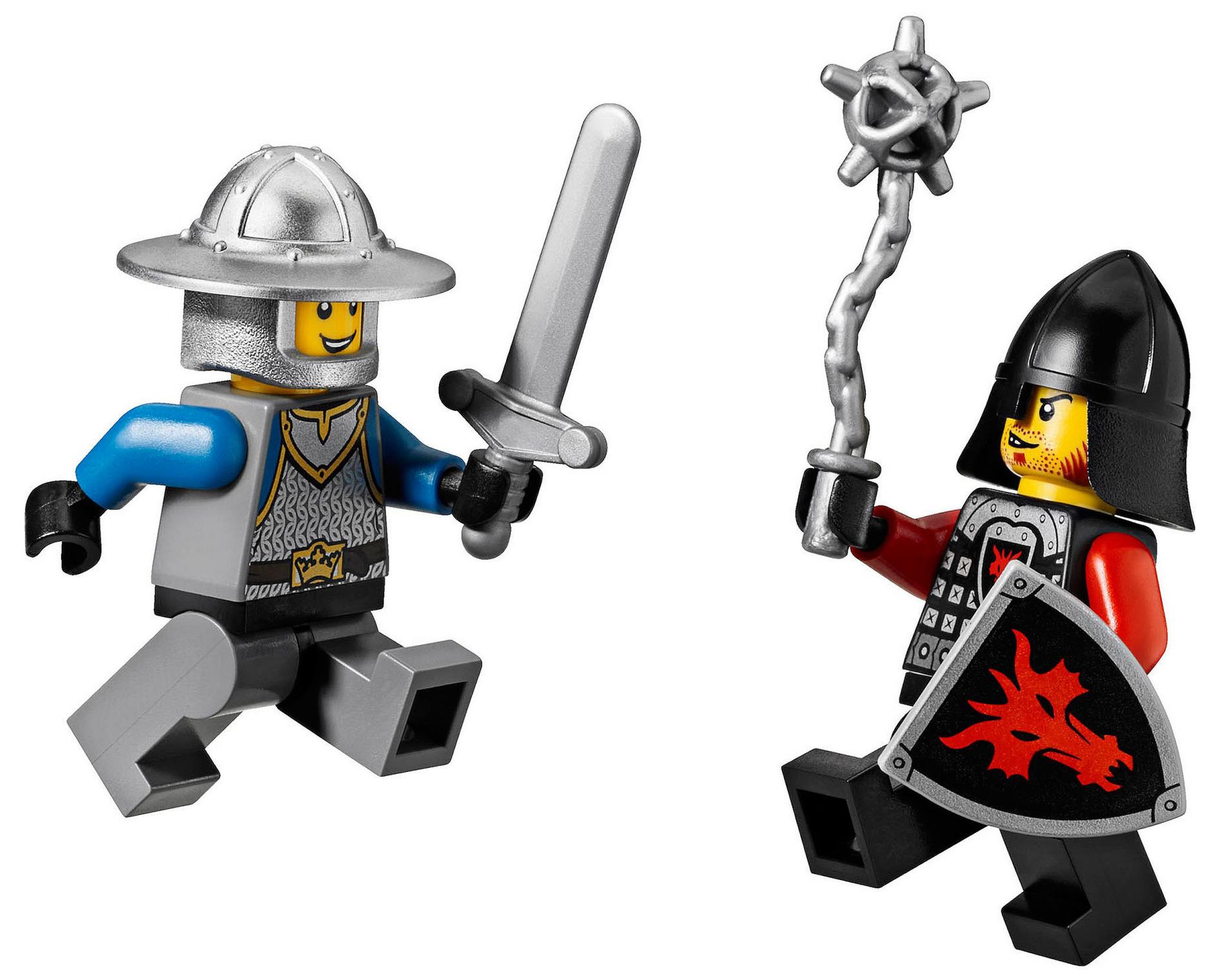 | 1 X Minifig, Shield Triangular with Black and Gold Lion Head with Crown on Blue and White Background Pattern | Light Bluish Gray |   |  |