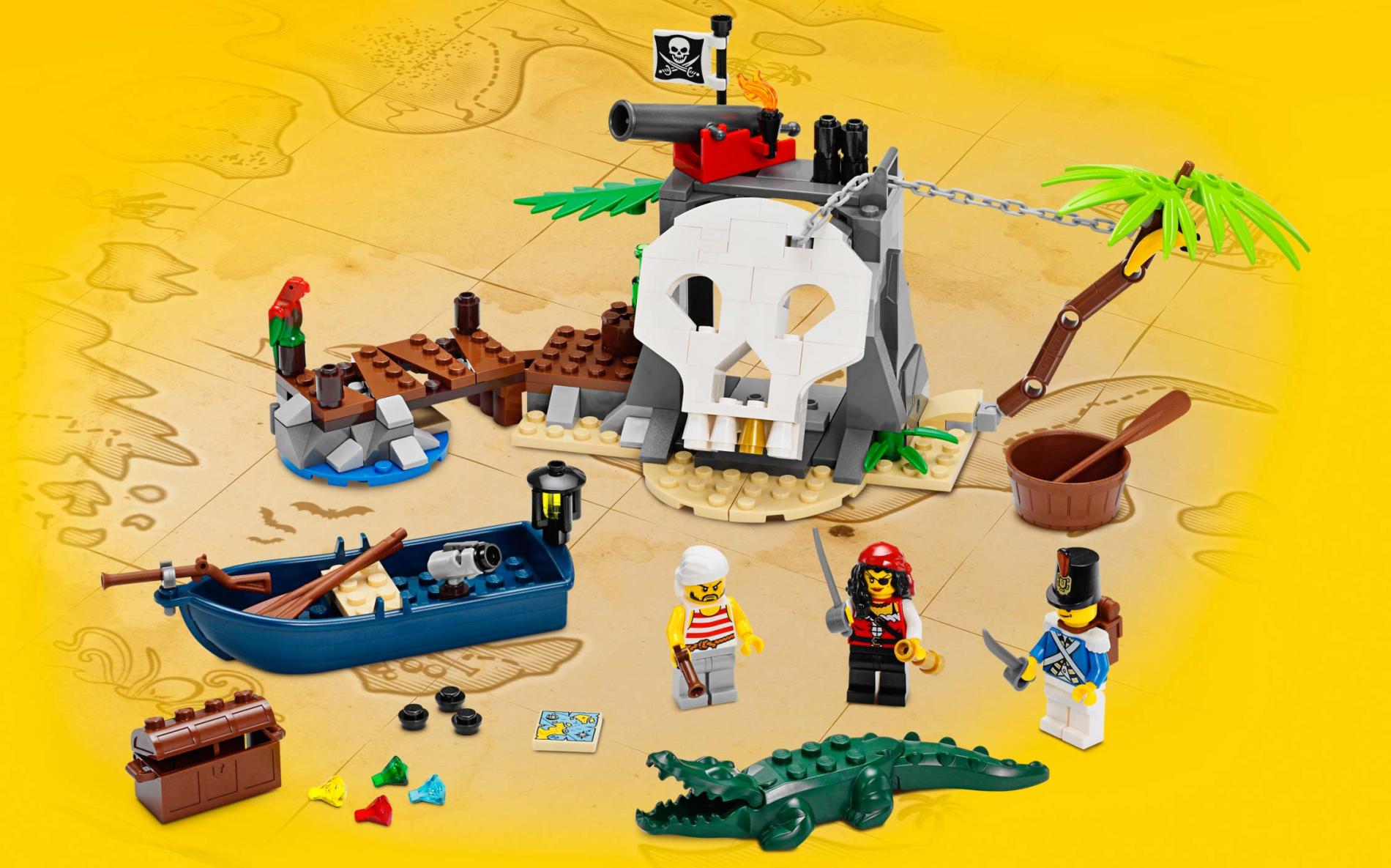 | 1 X Tile 2 x 2 with Map with Red 'X' and Blue Water, Yellow Land, Compass and Pirate Ship Pattern | Tan |   |  |