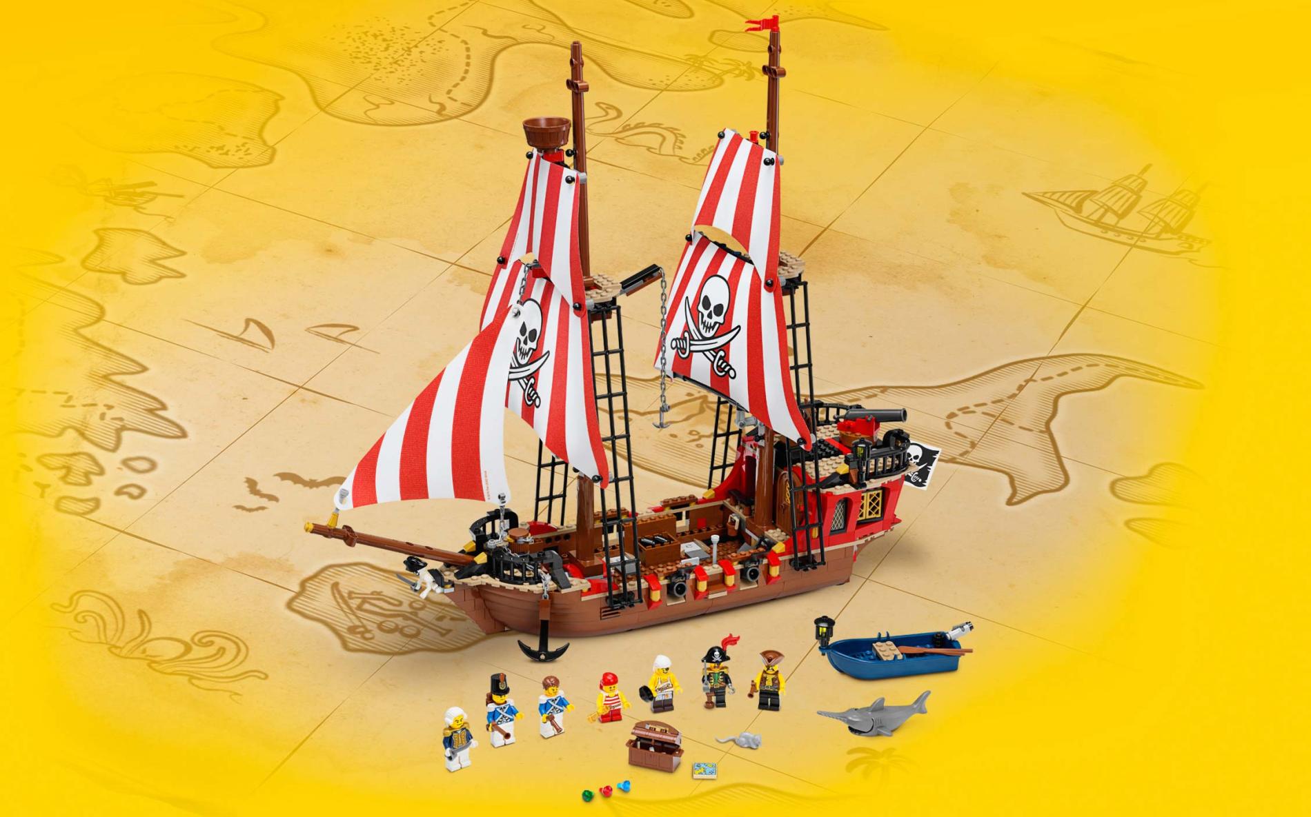 | 1 X Tile 2 x 2 with Map with Red 'X' and Blue Water, Yellow Land, Compass and Pirate Ship Pattern | Tan |   |  |