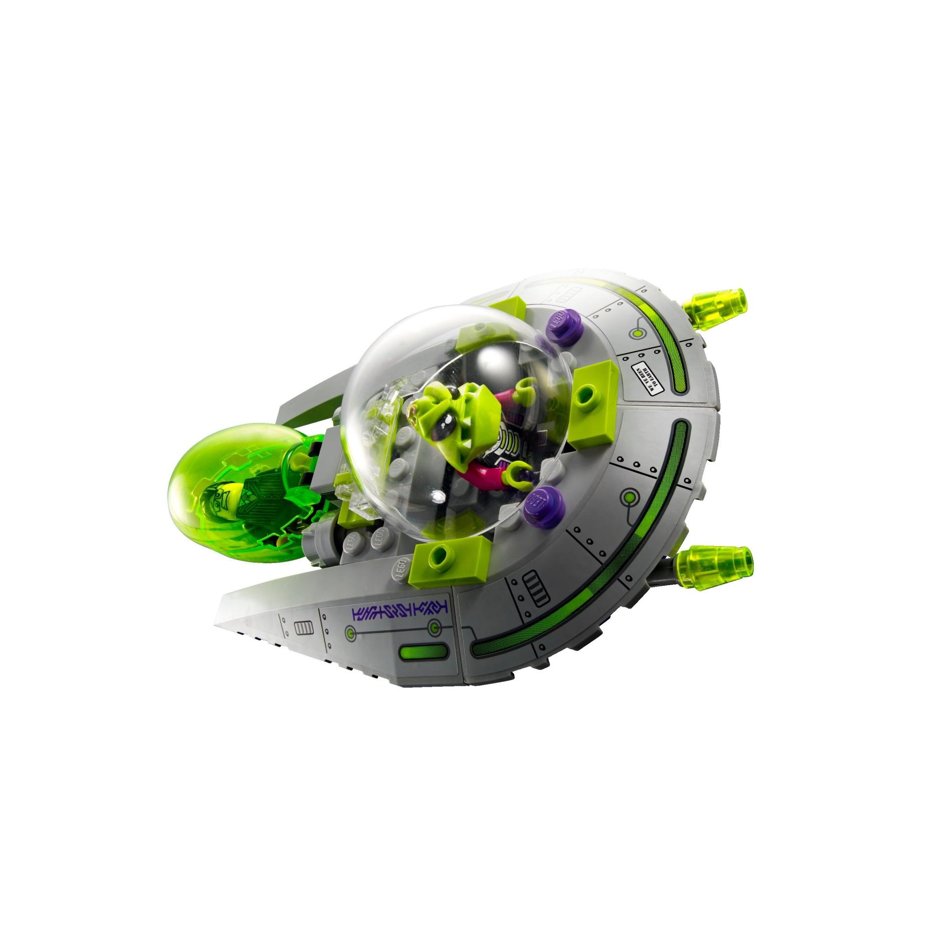 | 1 X Brick, Round Corner 6 x 6 with Slope 33 Edge, Facet Cutout with Alien Ship and 'We've Been to Earth' Pattern Model Left (Sticker) - Set 7051 | Light Bluish Gray |   |  |