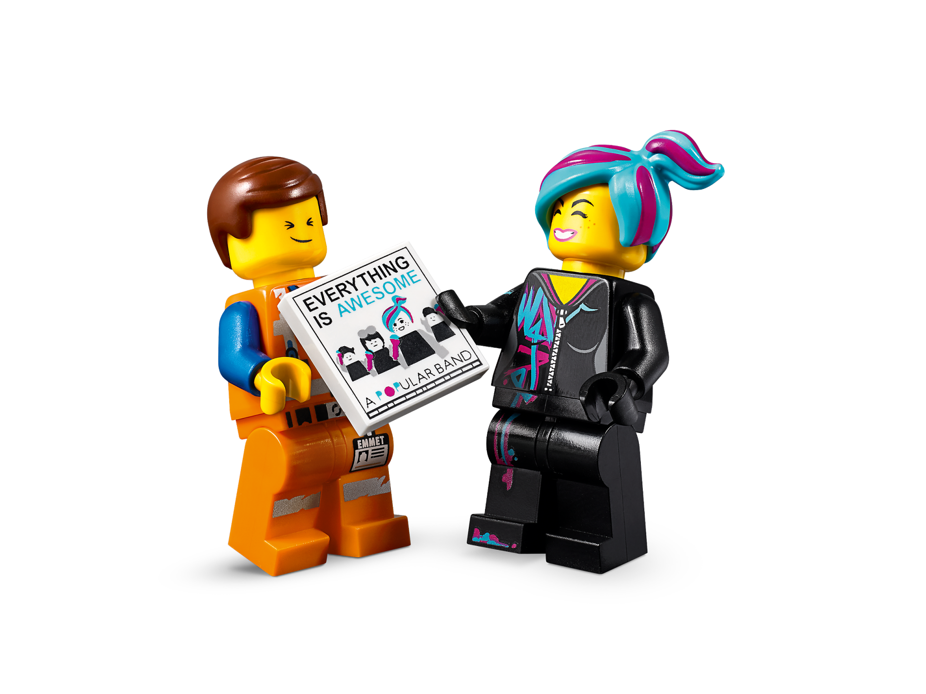 | 1 X Tile 2 x 2 with Groove with 'EVERYTHING IS AWESOME', 'A POPULAR BAND' and Minifigures with Microphones Pattern | White |   |  |