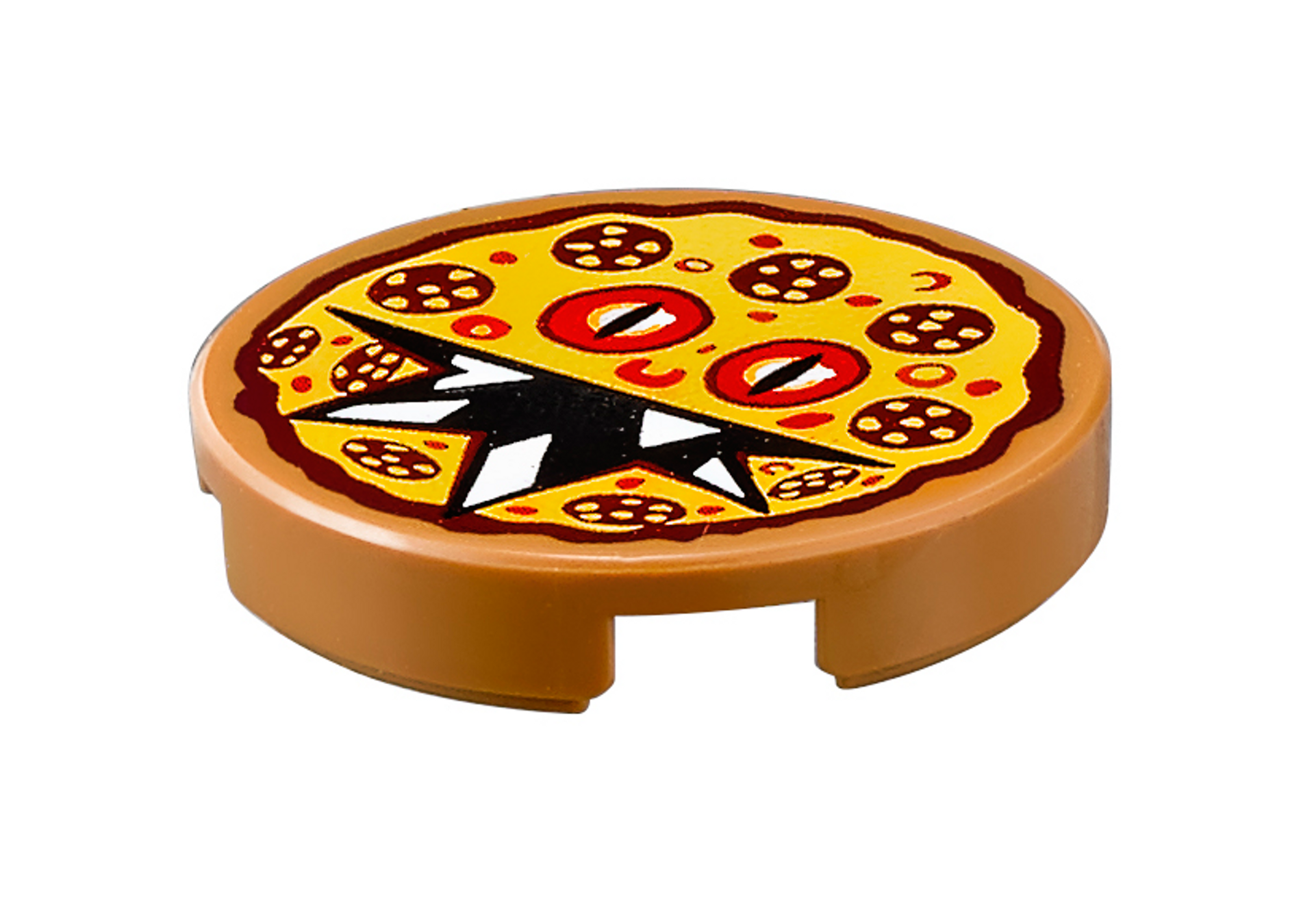 | 1 X Tile, Round 2 x 2 with Bottom Stud Holder with Pizza Pepperoni Scary Face Pattern | Medium Dark Flesh |   |  |