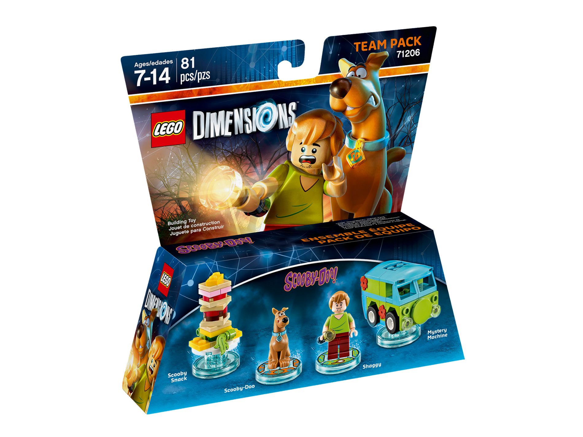 | 1 X Dimensions Toy Tag 4 x 4 x 2/3 with 2 Studs for Shaggy #17 with Orange Magnifying Glass Pattern | Trans-Light Blue |   |  |