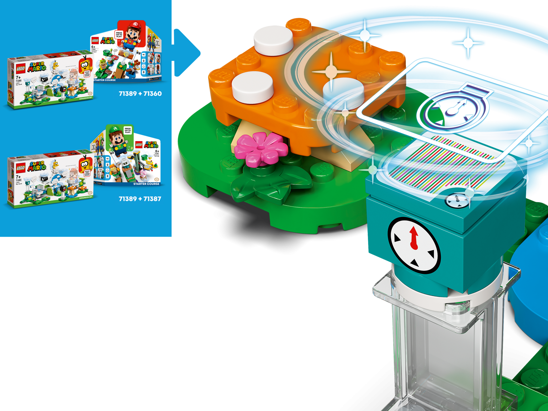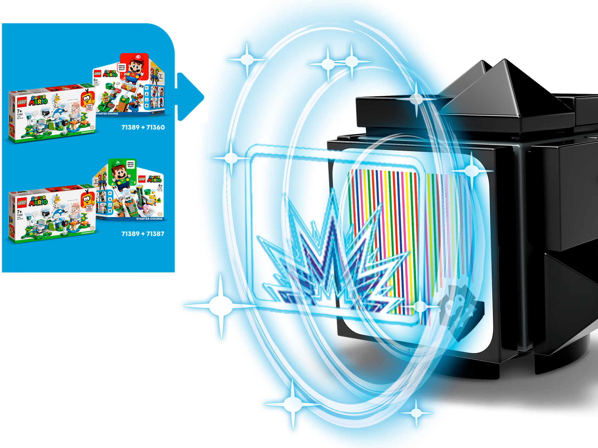 | 1 X Tile, Modified 4 x 4 with Rounded Corners and 4 Feet with Super Mario Scanner Code 2 Arrows Cycle Pattern (Sticker) - Set 71389 | White |   |  |