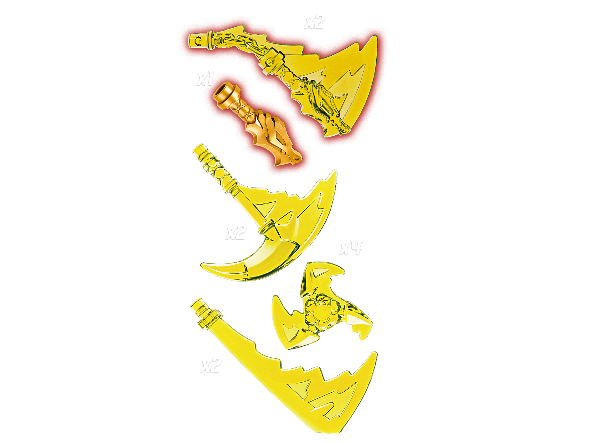 | 1 X Minifigure, Weapon Pack Sickles, Swords and Shuriken, 10 in Bag (Multipack) | Trans-Neon Green |   |  |