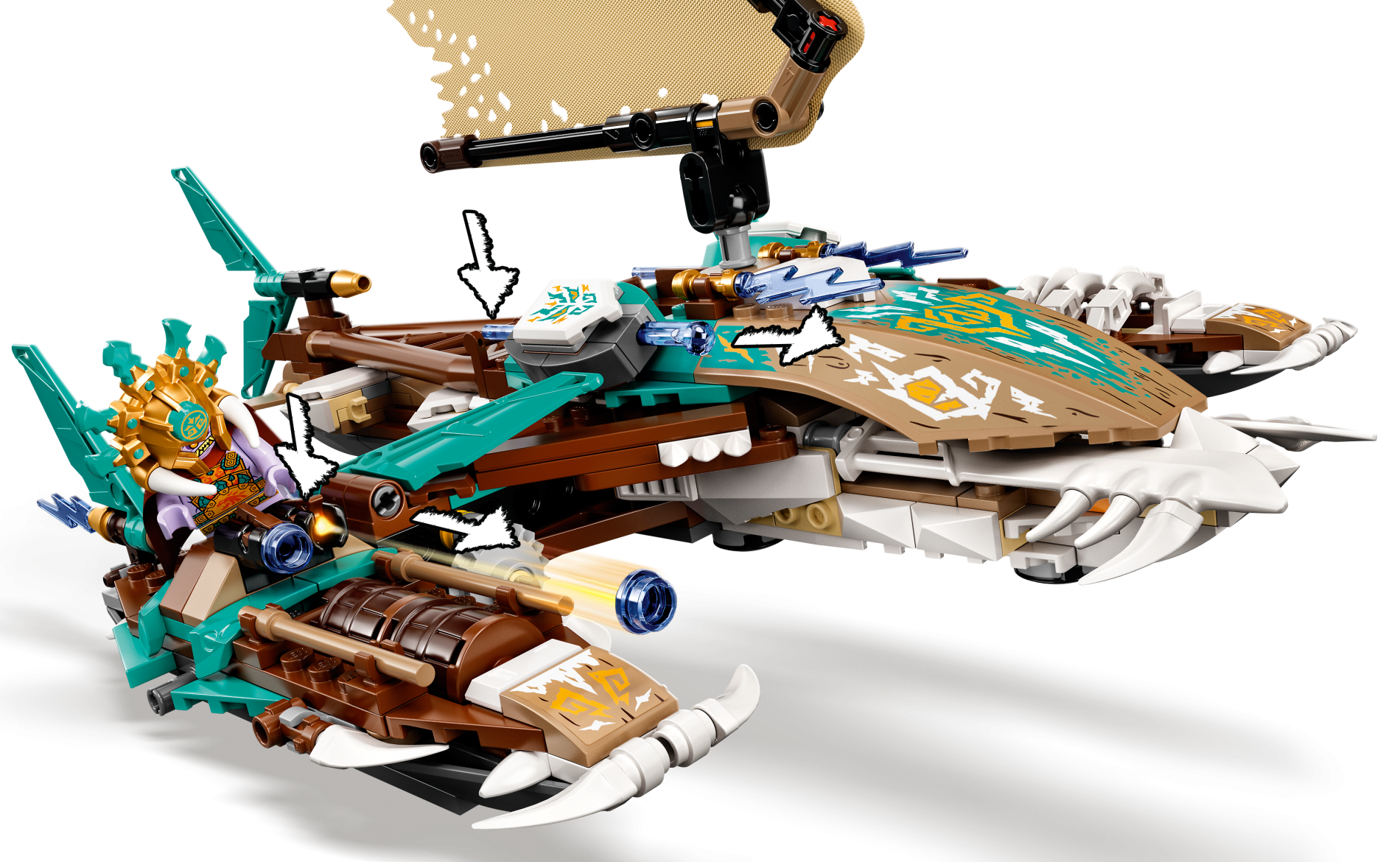 | 1 X Minifigure, Shield Ovoid with White Dragon Head and Bright Light Orange Filigree on Dark Turquoise Background Pattern | Dark Tan |   |  |