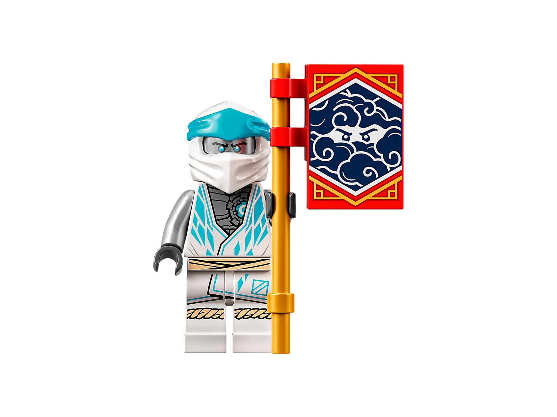 | 1 X Minifigure, Headgear Ninjago Wrap Type 4 with Medium Azure Headband Pattern | White |   |  |