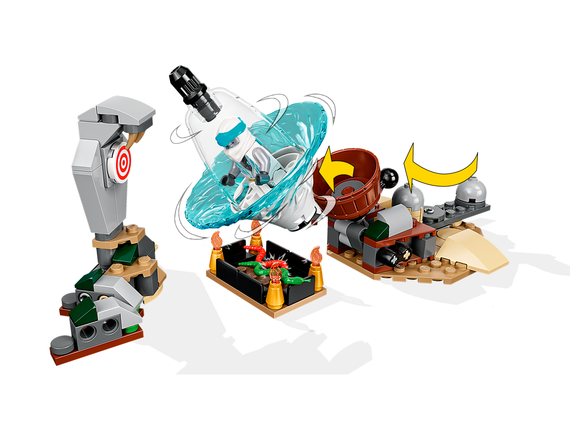 | 1 X Brick, Modified 2 x 4 with Rip Cord Track and Pin Socket (Ninjago Spinjitzu Top) | Dark Bluish Gray |   |  |