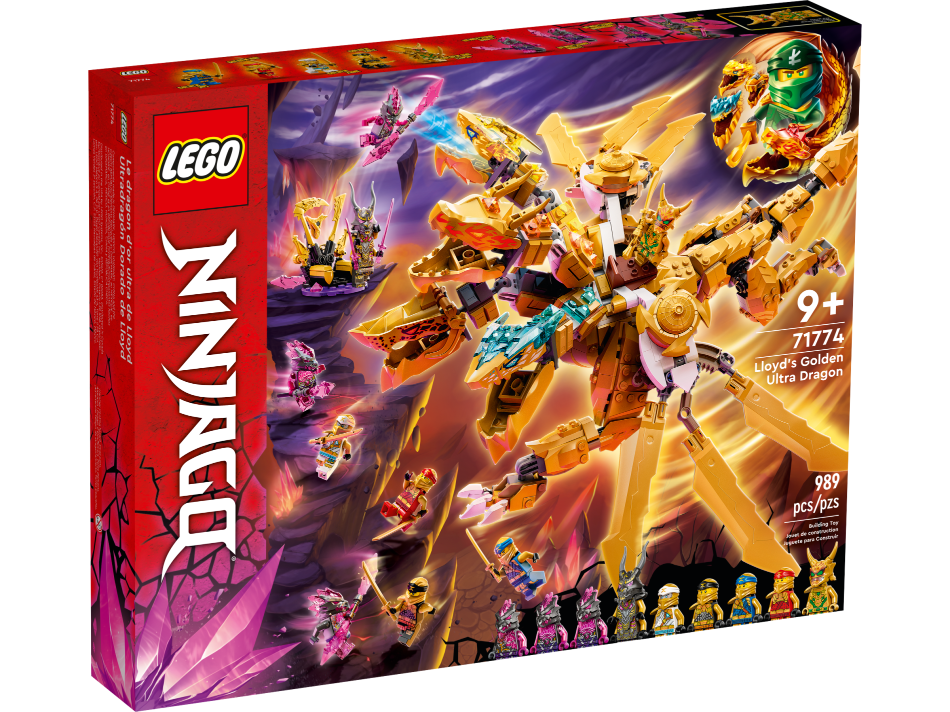 | 1 X Dragon Head (Ninjago) Jaw with 2 Bar Handles on Back with Bright Light Orange and Bright Light Yellow Eyes and Red Flames Pattern | Pearl Gold |   |  |
