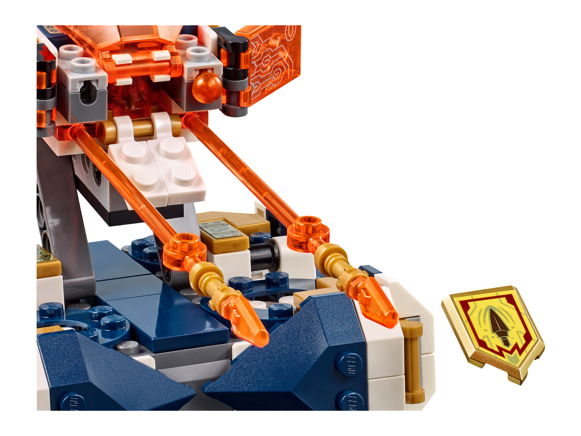 | 1 X Tile, Modified 2 x 3 Pentagonal with Nexo Power Shield Pattern - Merlok Power Spear | Metallic Gold |   |  |