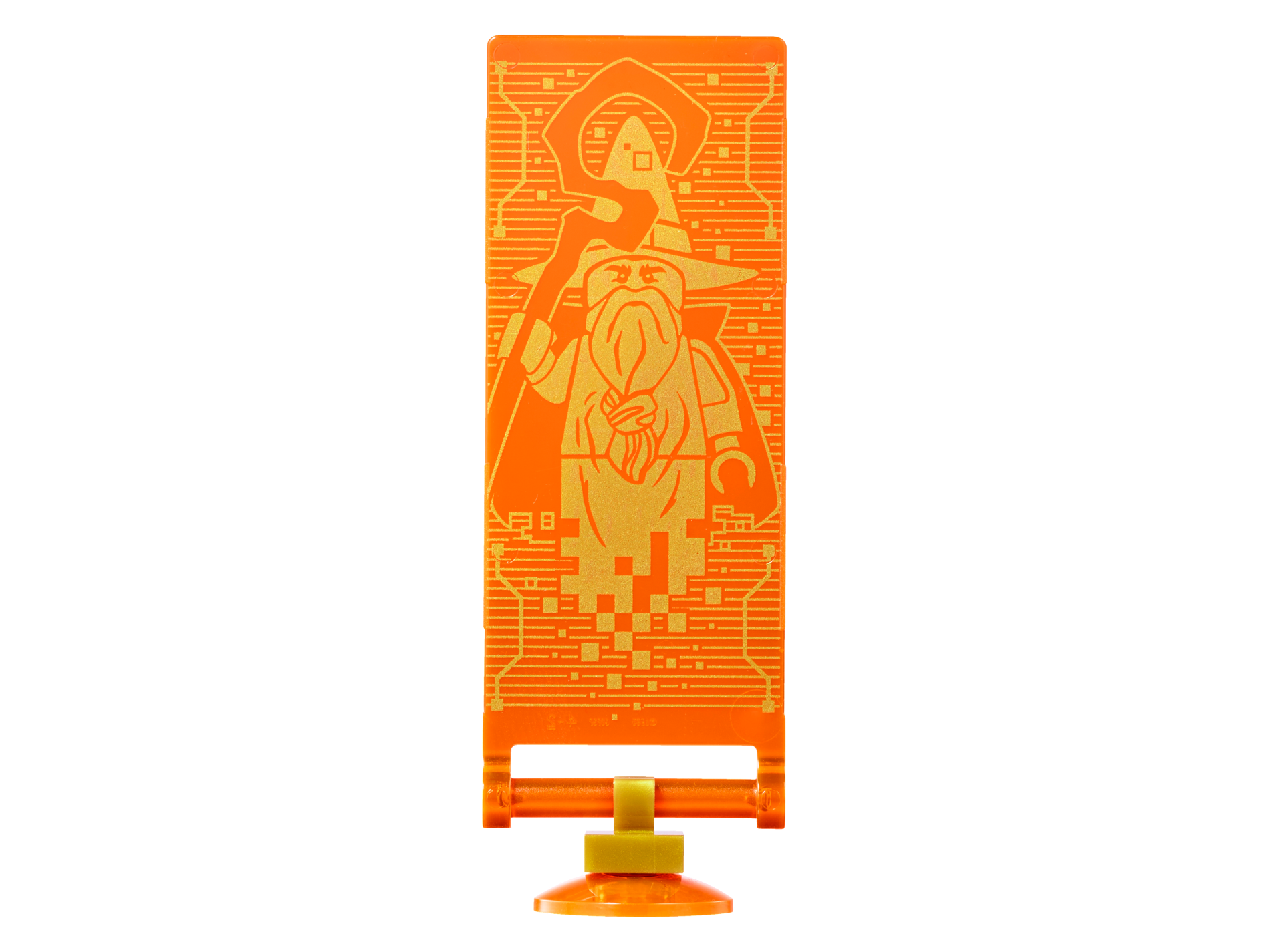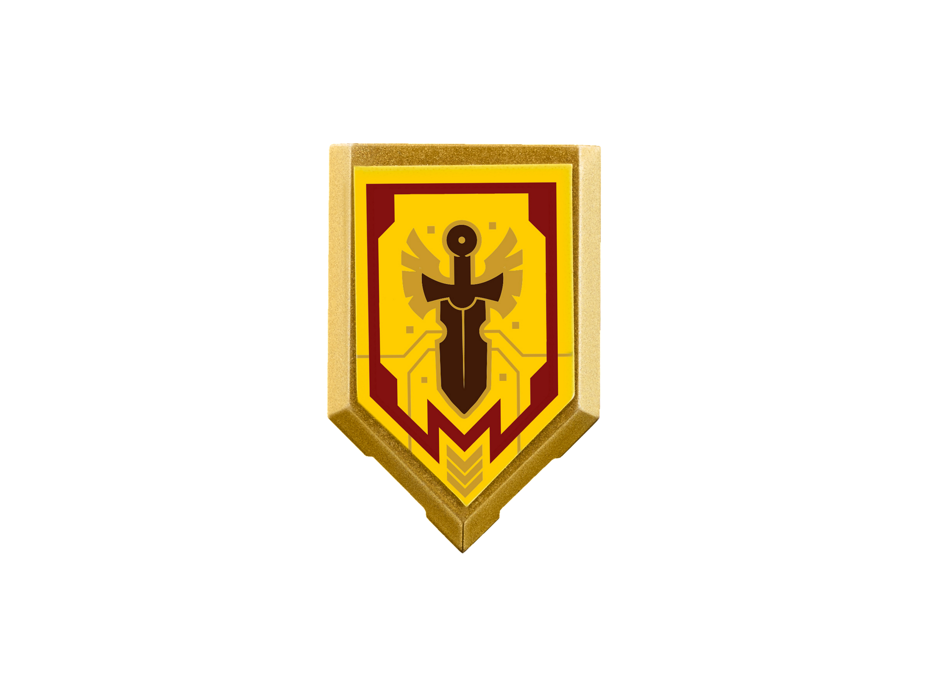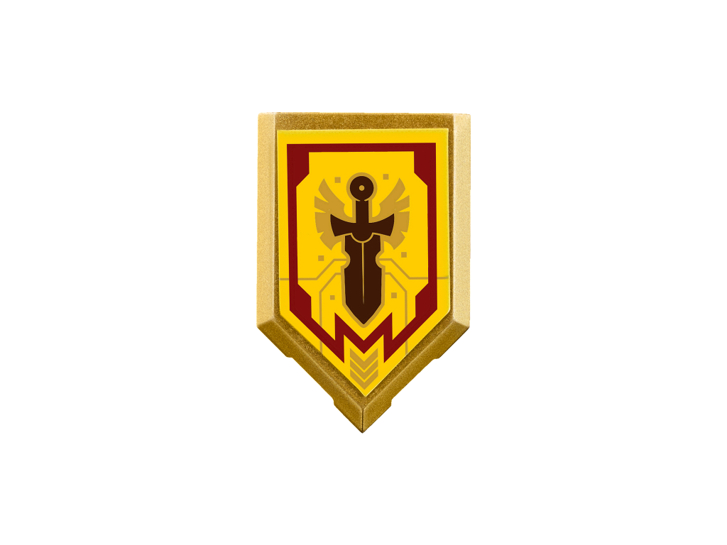 | 1 X Tile, Modified 2 x 3 Pentagonal with Nexo Power Shield Pattern - Merlok Power Sword | Metallic Gold |   |  |
