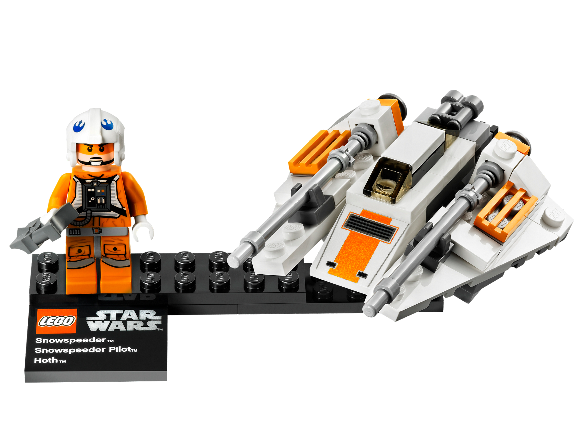 | 1 X Tile, Modified 4 x 4 with Studs on Edge with Lego Star Wars Logo and 'Snowspeeder Snowspeeder Pilot Hoth' Pattern - Set 75009 | Black |   |  |