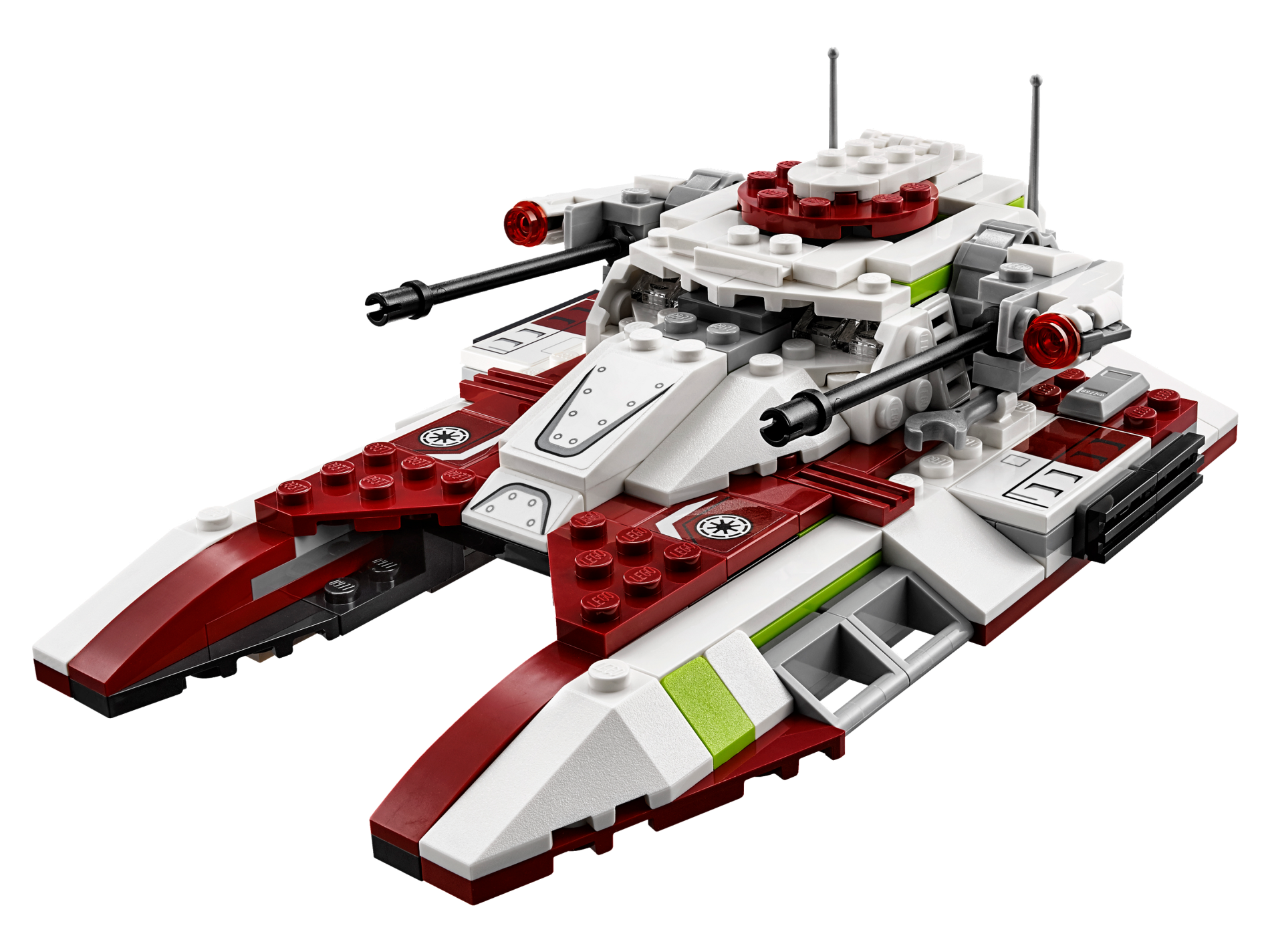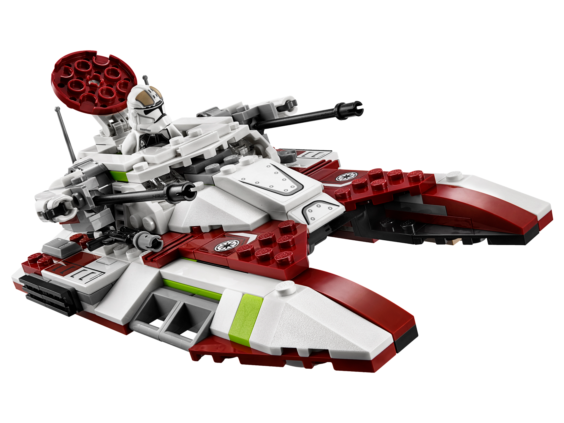 | 1 X Tile 2 x 2 with SW Republic Logo and White and Black Stripes Bent Pattern Model Right (Sticker) - Set 75182 | Dark Red |   |  |