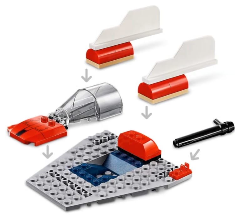 | 1 X Wedge 4 x 4 x 2/3 Triple Curved with SW A-wing Hull Plates Pattern | Red |   |  |