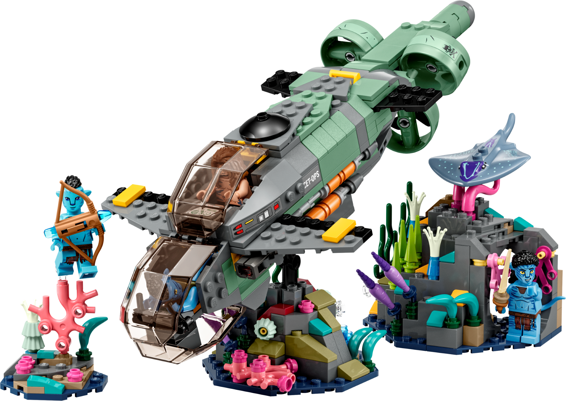 | 1 X Manta Ray / Stingray with 2 Studs with Black Eyes, Dark Purple Markings, and Metallic Light Blue Spots Pattern | Sand Blue |   |  |